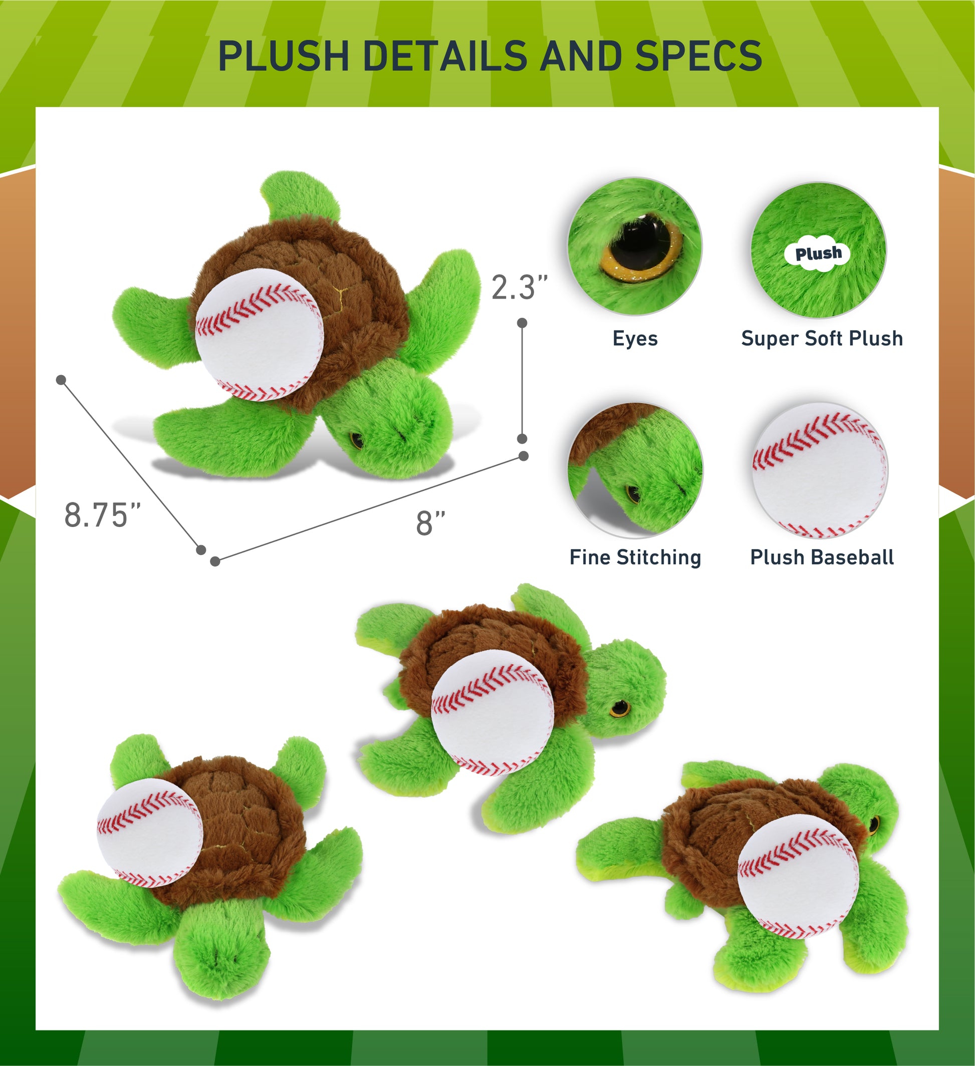 Ideal Use for the Kids Baseball Plush and Stuffed Big Eye Sea Turtle - The turtle baseball stuffed animal makes a great addition to your kids baseball stuff for boys collection. Great gifts for boys who love sports and plush dolls. If you're looking for the perfect baseball gift ideas for kids, this stuffed turtle with baseball plush is the perfect choice. It's the perfect stuffed animal baseball birthday gifts to give on any special occasion.