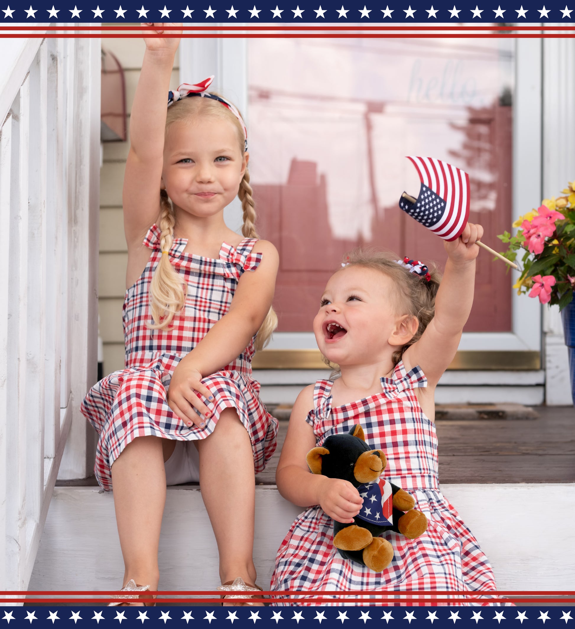 6" PLUSH - BLACK BEAR WITH USA FLAG BANDANA