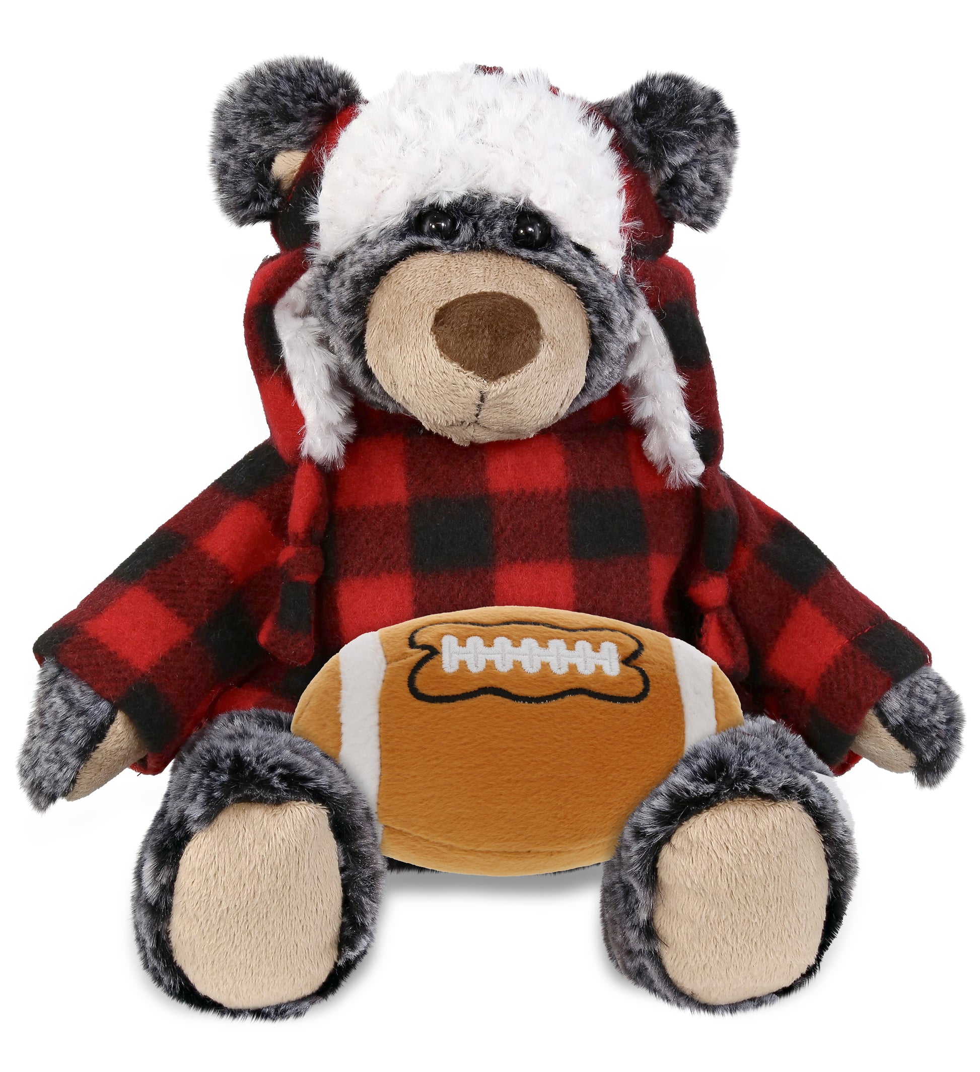 SUPER SOFT PLUSH - RED PLAID OUTFIT - BLACK BEAR with Football Plush