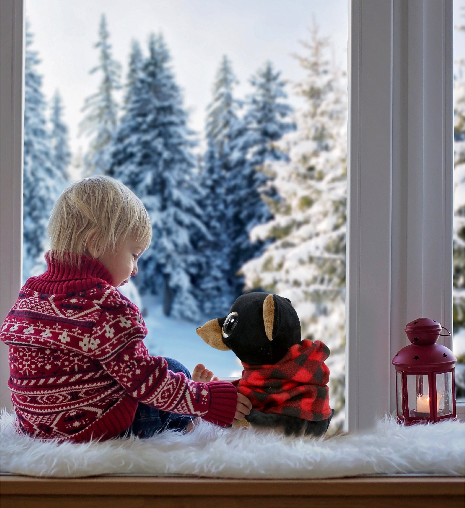 SPARKLE EYES PLUSH - LARGE BLACK BEAR WITH RED PLAID HOODIE