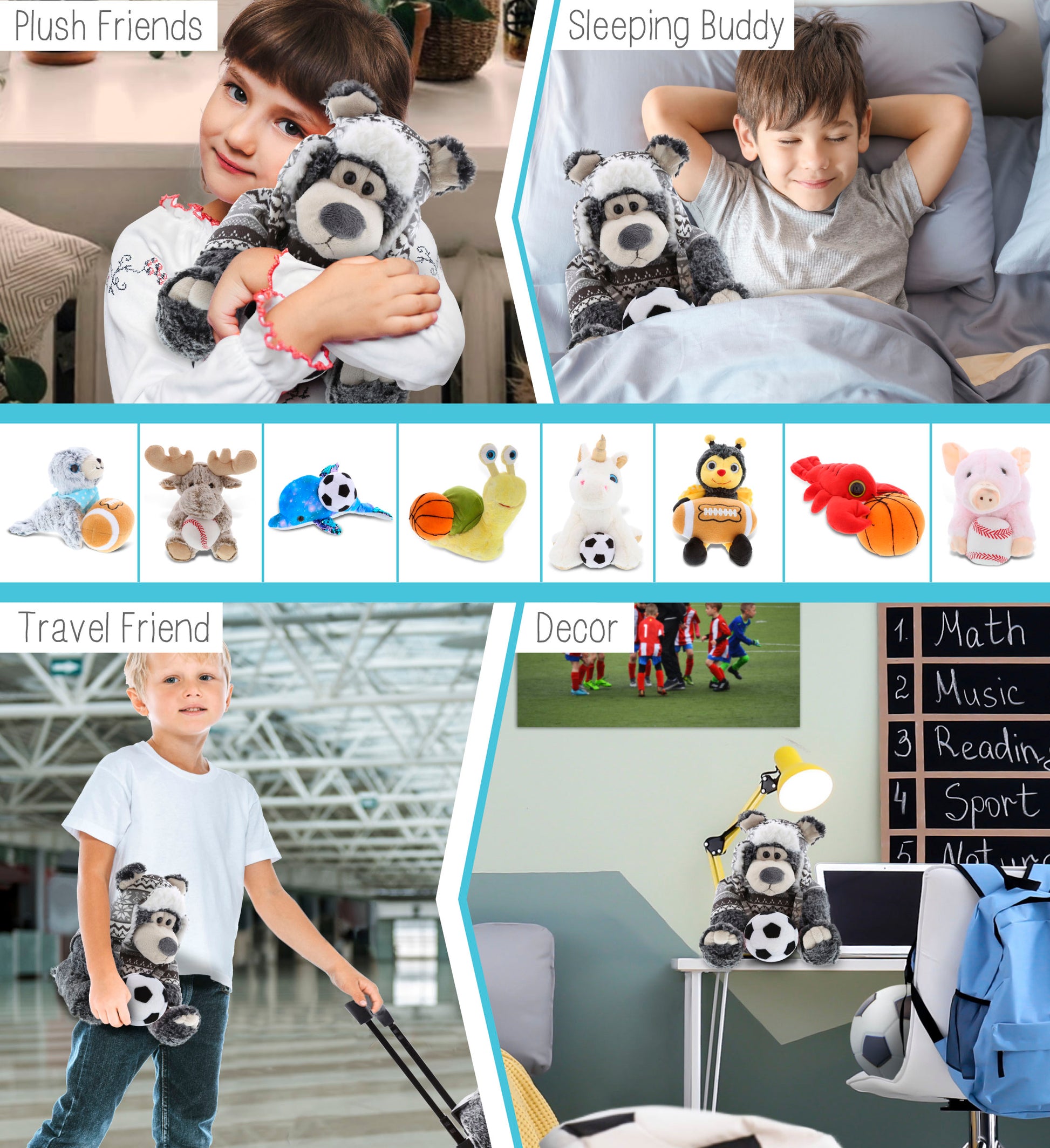 HIGH QUALITY SUPER SOFT PLUSH BEAR STUFFED ANIMAL - The machine-sewn black bear toy plush and soccer ball is made of premium-quality polyester, stuffed with soft fluffy polyester fillings. Made with durable and child-friendly features. Cute and snuggly black bear sitting down. Cute soft toys designed to be your little one's best buddies. To maintain fluffy stuffed animals, wash black bear plush toys with cold soapy water and allow it to air dry.