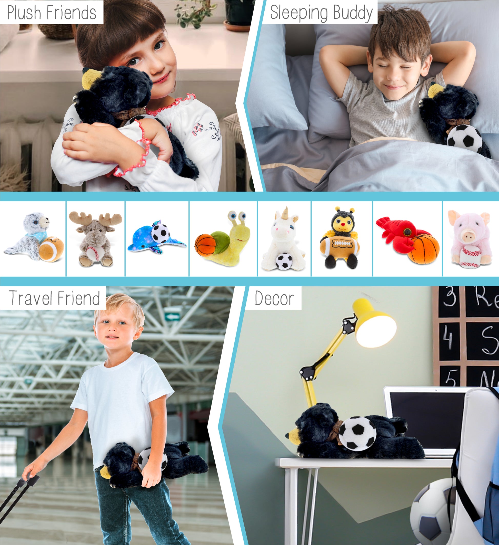 SUPER SOFT PLUSH - LYING WILD BLACK BEAR WITH SOCCER PLUSH