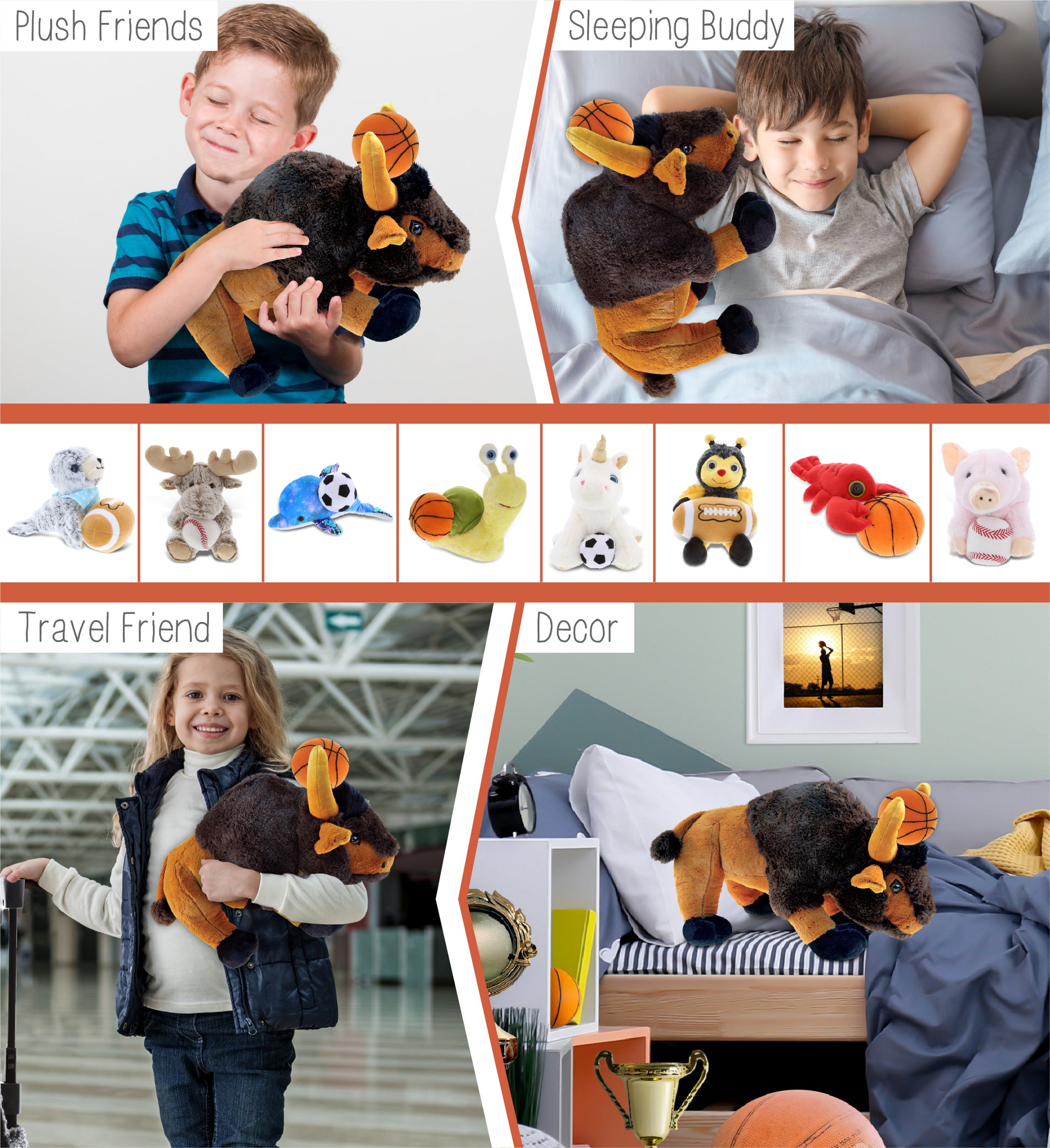 Included with the Purchase of Adorable Cute Buffalo Plush - Includes 1 DolliBu Wild Large Buffalo Super Soft Plush with a basketball plush, decorated with realistic features of a cute plush animal. The buffalo body with a sports gift ball plush makes the plush perfect for cuddles. The buffalo plush toy features details like its characteristic horns. The buffalo eyes make the critter so charming. The plush toy buddy measures 17Lx11Wx10H inches.