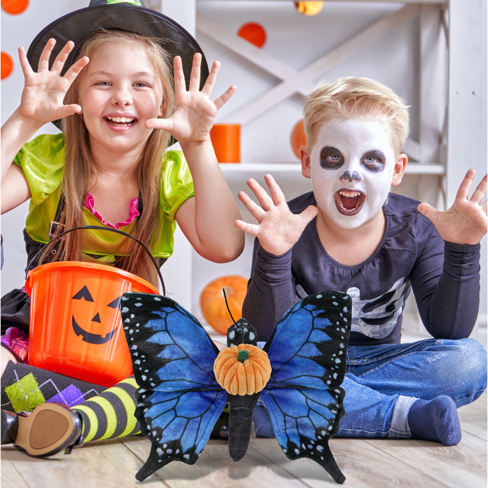 High-Quality Fall Gift for Kids and Adults - The butterfly super soft stuffed animals for cuddling is a cute soft stuffed animal covered in blue fluffy plush made of premium quality 100% polyester. Snuggly soft pumpkin decor Halloween toys crafted with durable materials designed to deliver a loving message to your friends and family. Maintain the plush, wash it with water, and allow to dry. Add to a Halloween basket for baby, kids or adults.
