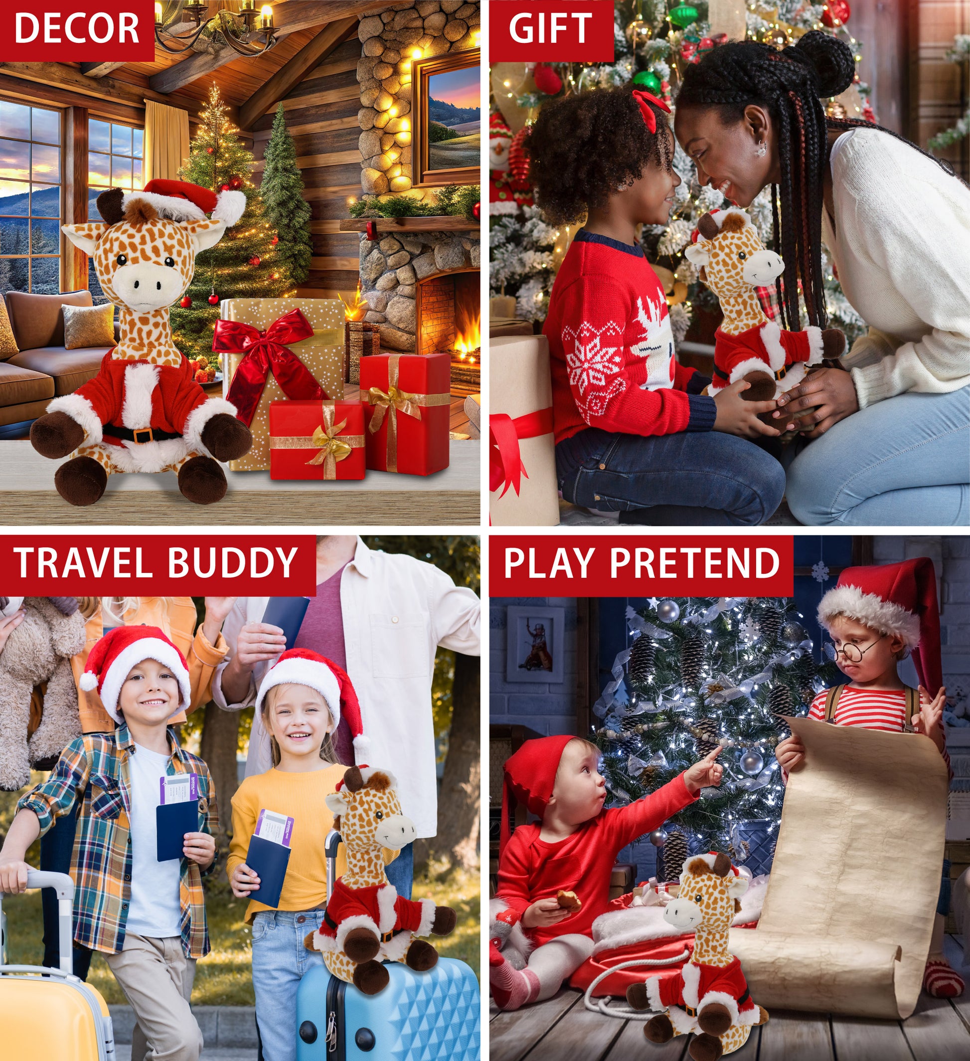 PLUSH - GIRAFFE 10" WITH SANTA DRESS UP