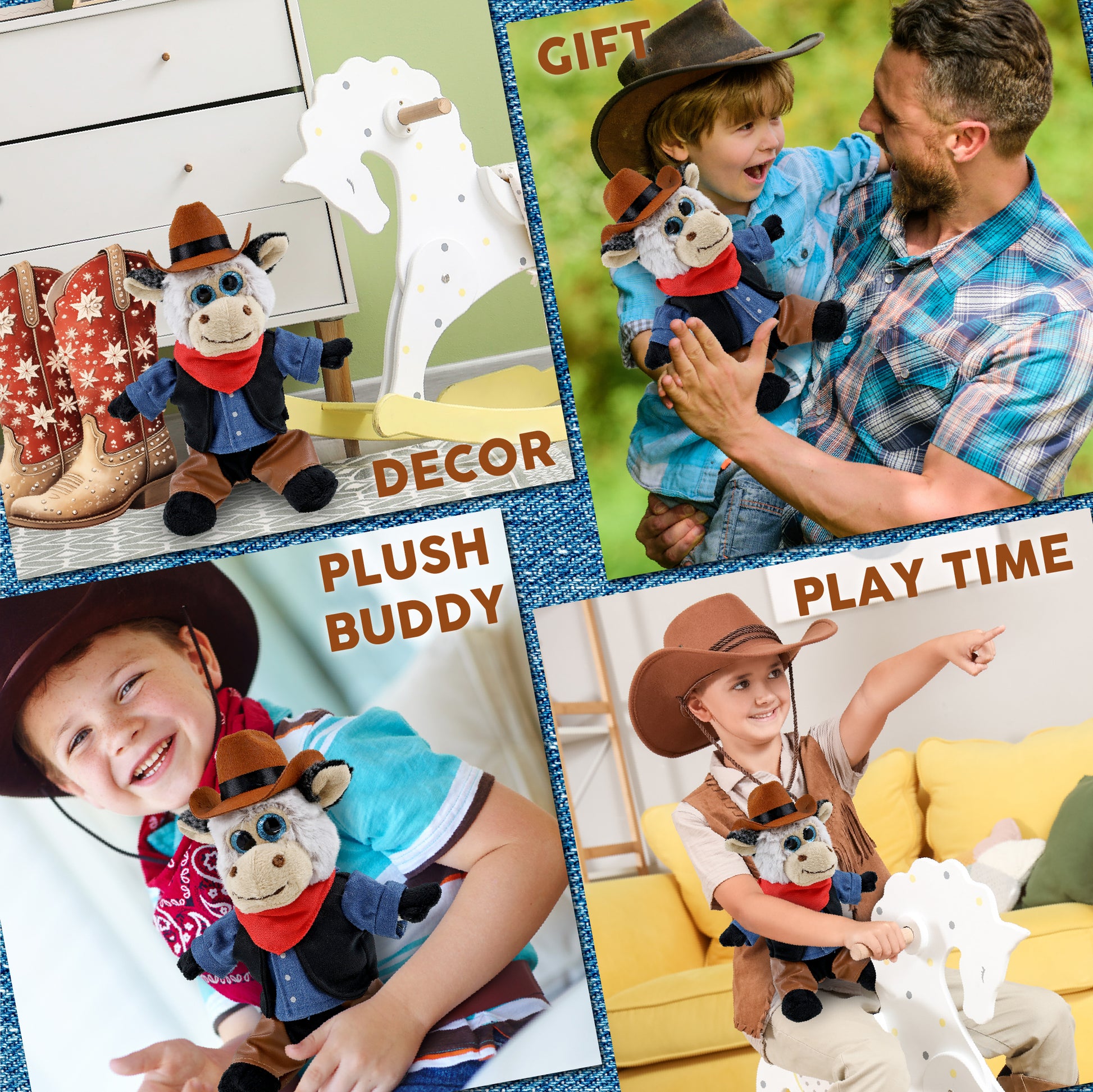 SUPER SOFT PLUSH - SITTING COW With COWBOY Dress Up