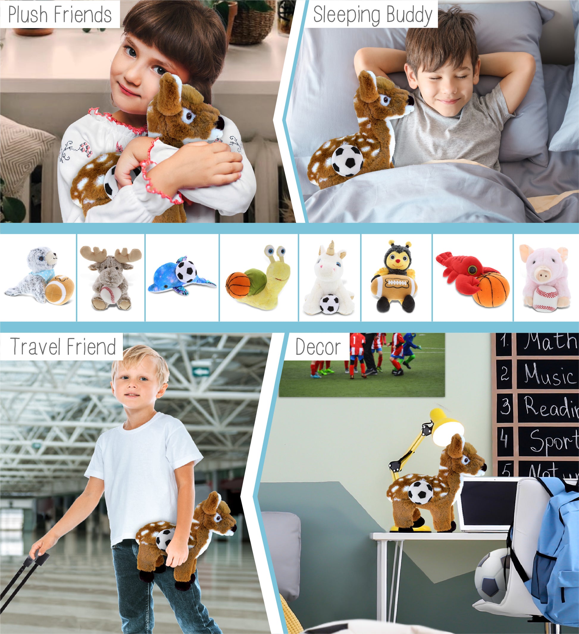 HIGH QUALITY SUPER SOFT PLUSH DEER STUFFED ANIMAL - The machine-sewn deer toy plush and soccer ball is made of premium-quality polyester, stuffed with soft fluffy polyester fillings. Made with durable and child-friendly features. Cute and snuggly deer standing. Cute deer soft toys designed to be your little one's best buddies. To maintain fluffy stuffed animals, wash deer plush toys with cold soapy water and allow it to air dry.