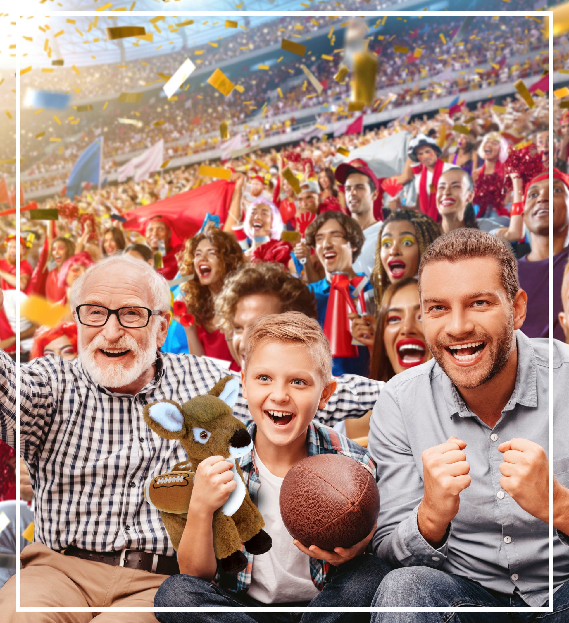 PERSONALIZATION, CUSTOMIZATION, AND ADD-ON OPTIONS - Super Soft Sports Stuffed Animal Large Standing Deer comes customized with a Football Plush. You can personalize it with the name of your loved one imprinted on the item. You also have the option to add some or all of the cool add-ons to make your gift extra special: 1) Gift Bag; 2) Tissue Paper; 3) Greeting Card.