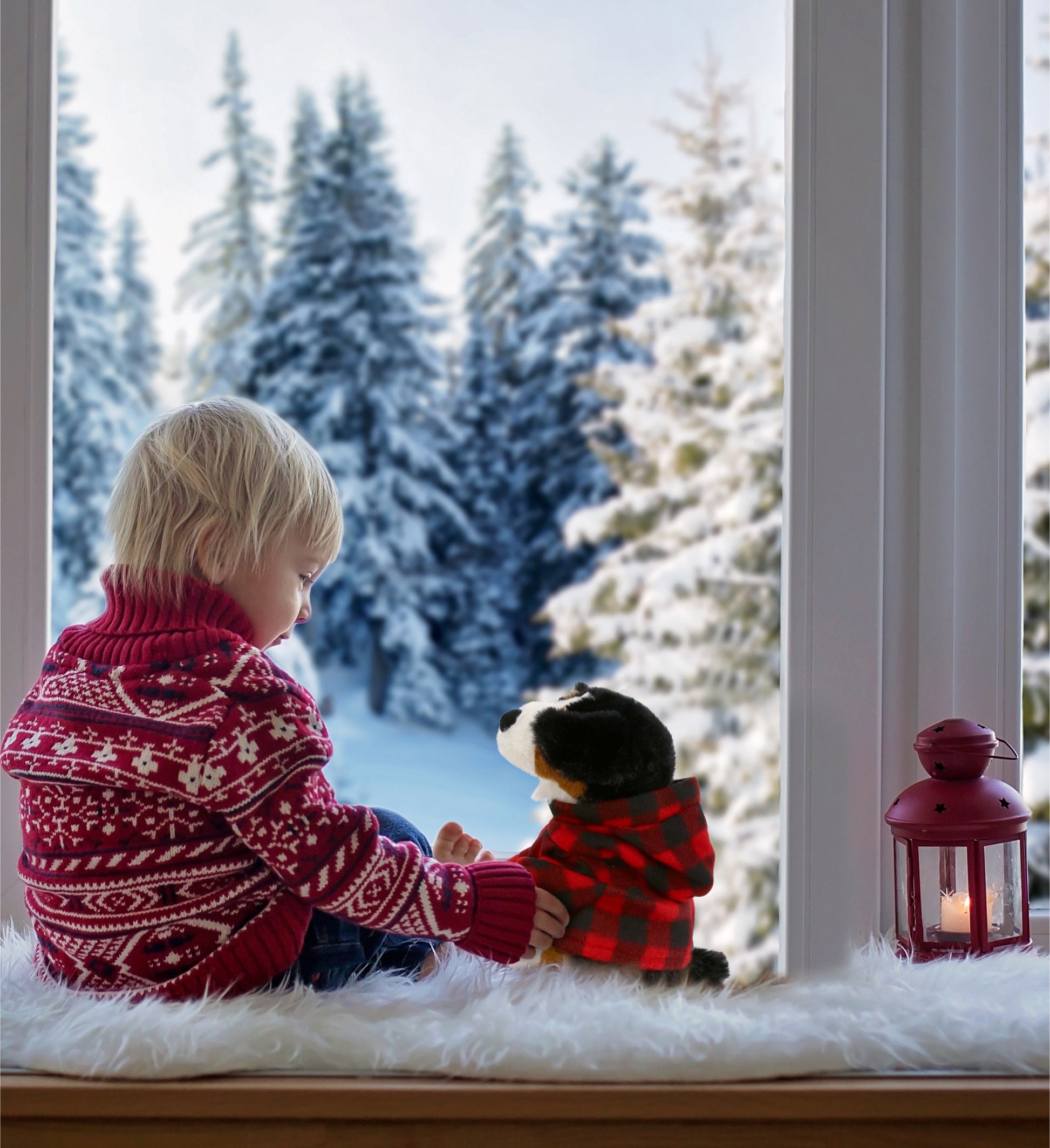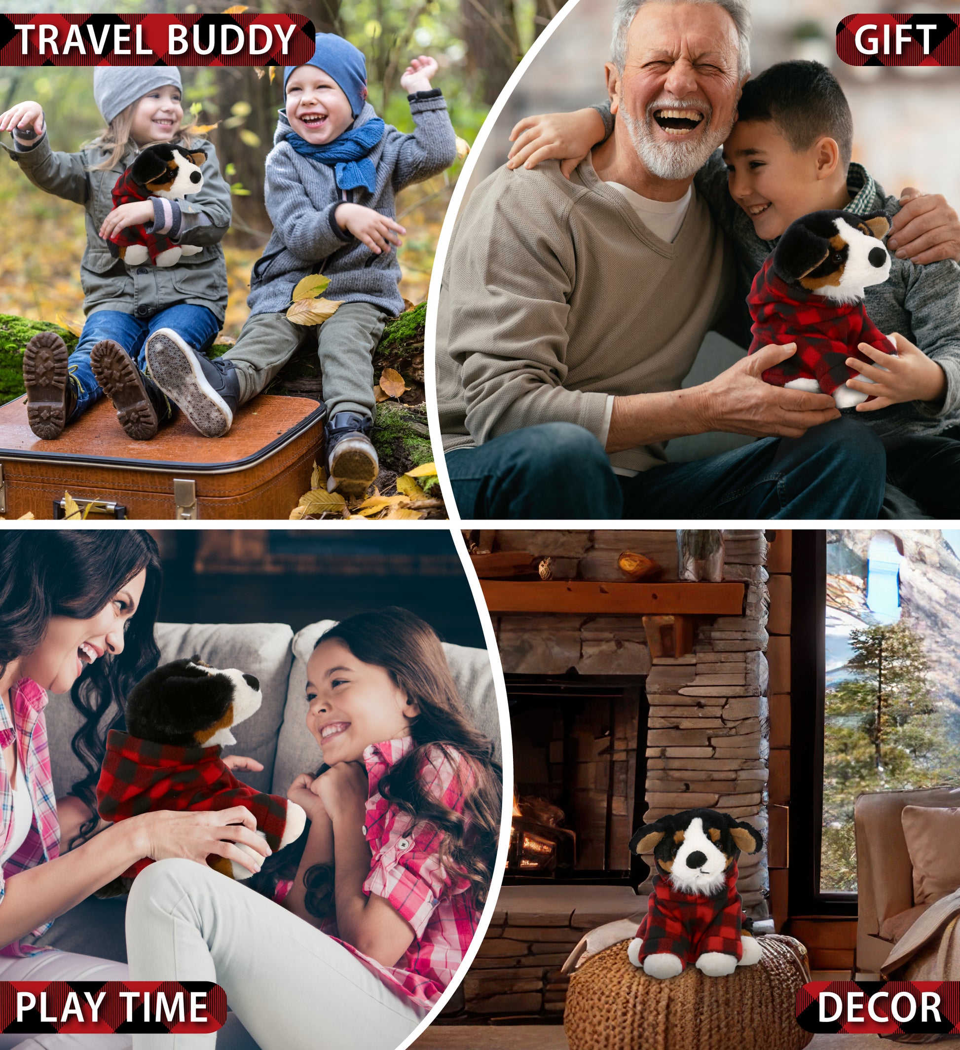 SUPER SOFT PLUSH - BERNESE DOG WITH RED PLAID HOODIE