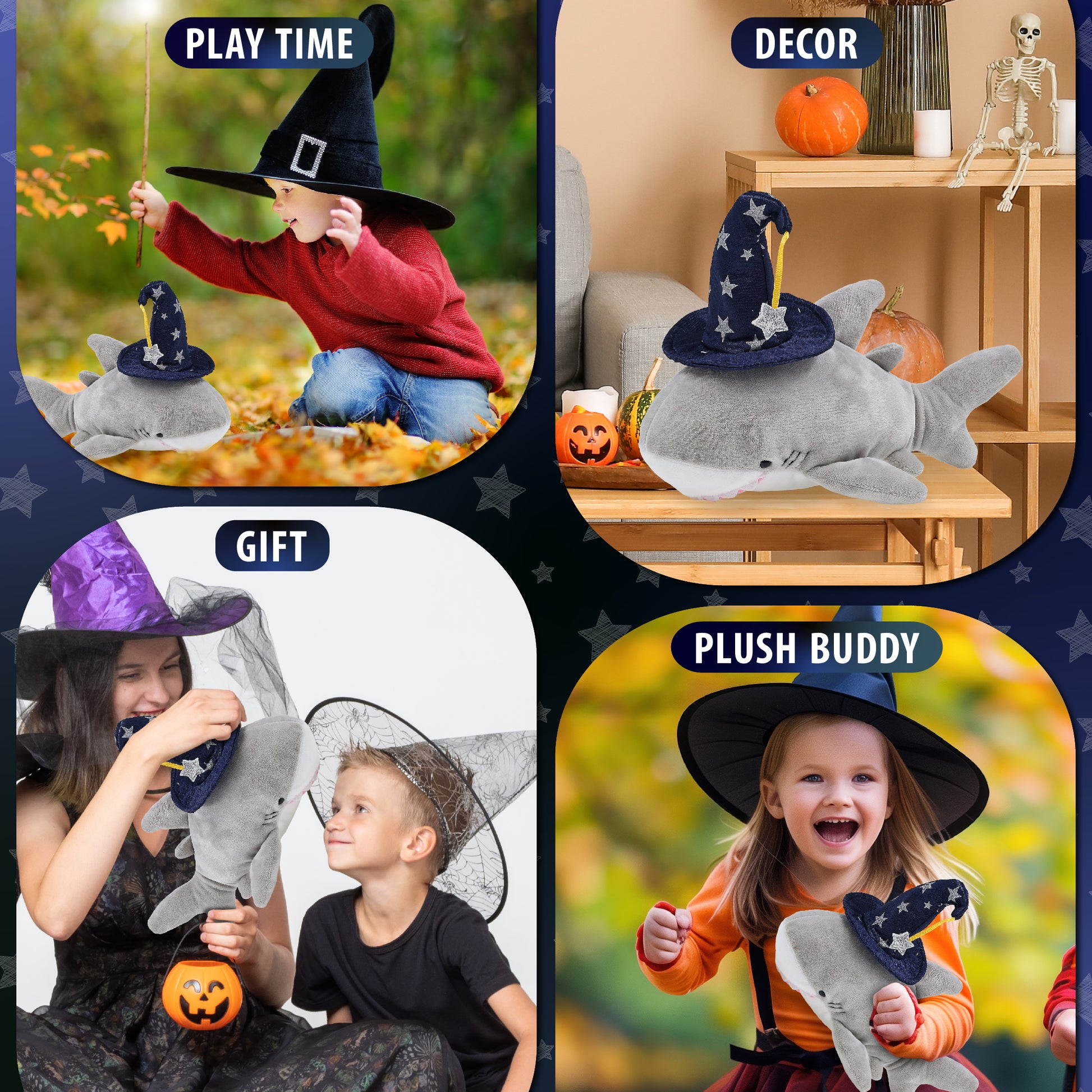 Features a Cute Shark Plush with Wizard Stuffed Animal Hat - With a wizard stuffed animal hat adorned with silver stars, this shark Halloween stuffed animal has a playful and stylish magical look! The detailed wizard fantasy hat adds character to your stuffed toys and makes them stand out among other cute shark figures. Everyone will love to play with a huggable stuffed animal with wizard clothes for stuffed animals.