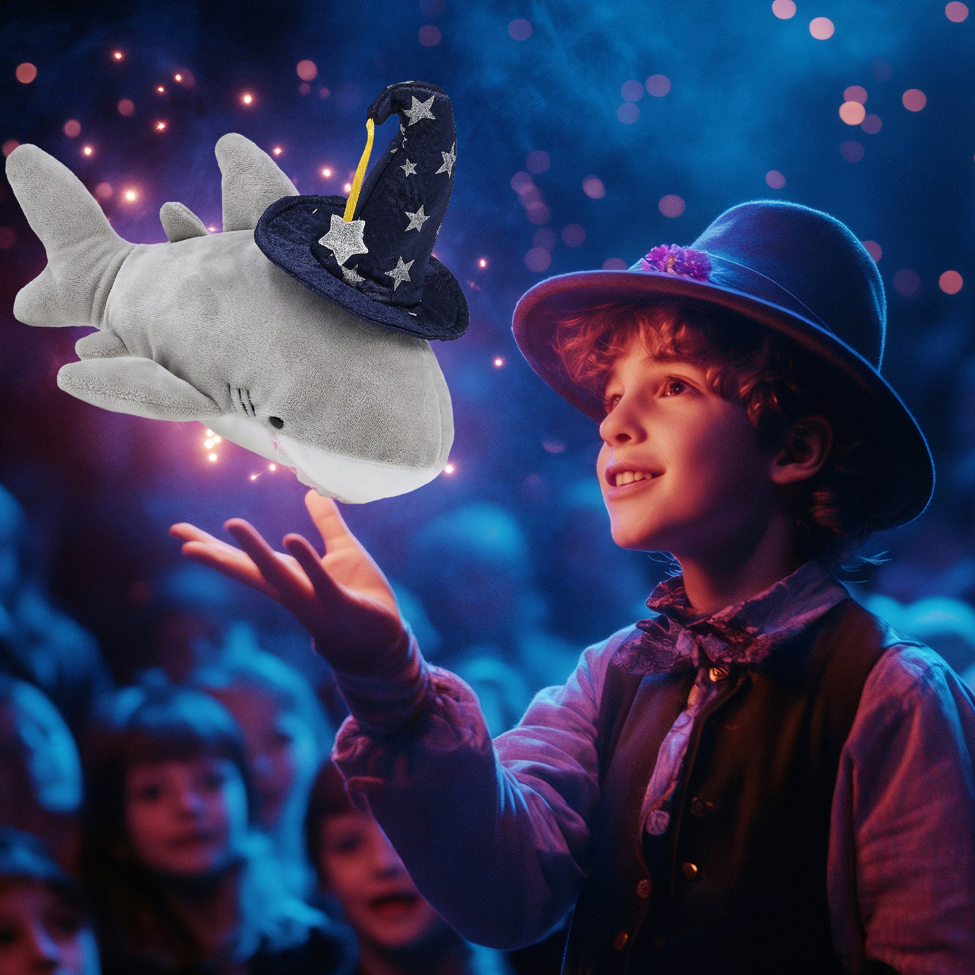 Made of High-Quality Polyester - The shark plush wizard toys are made with super-soft, premium-quality polyester materials. The teddy bear stuffed animal is designed for everyday hugs and dress-up fun. The shark plush wizard is a fun option for kids who love imaginative play and magical themes, making it an enchanting addition to your collection of Halloween costume hats for stuffed animals, shark plush toys, and shark wizard accessories.