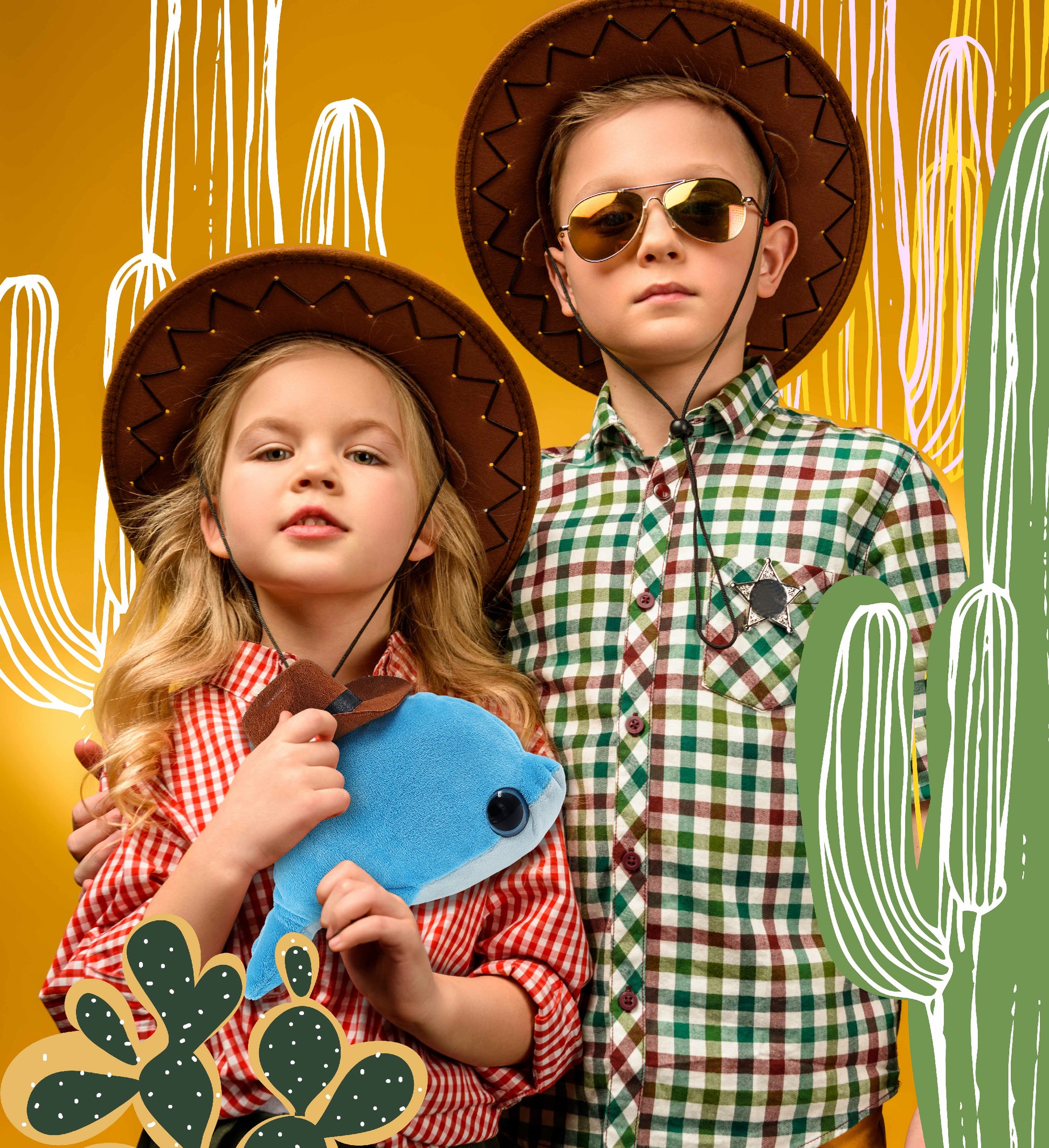Made of High-Quality Polyester - The cowboy plush doll hat and the plush toy dolphin are crafted with baby soft, durable, premium-quality polyester materials. This cute plush is built to last through animal cowboy showdown. The cowboy stuff hat can be easily put on any stuffed animal doll. Perfectly built to withstand everyday cuddles.