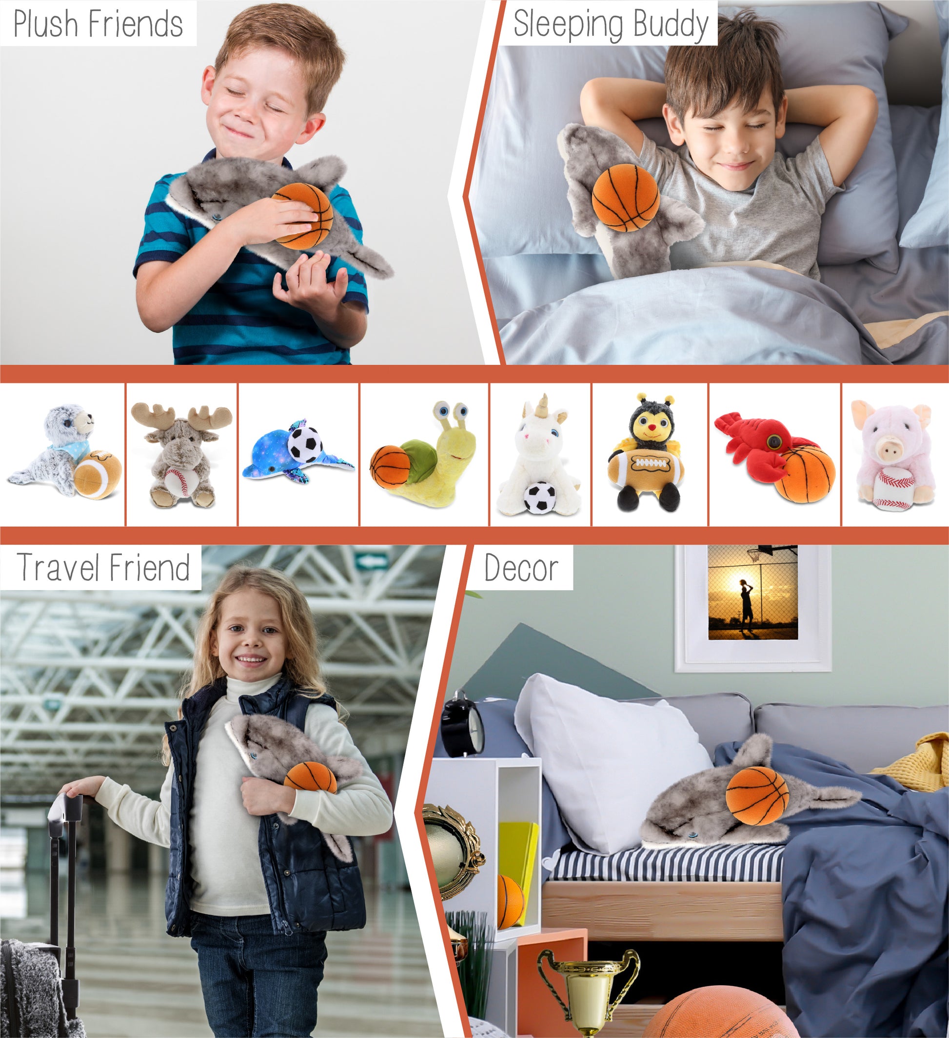 Included with the Purchase of Adorable Cute Dolphin Plush - Includes 1 DolliBu Super Soft Grey Dolphin with a basketball plush, decorated with realistic features of a cute plush animal. The body with a sports gift ball plush makes the plush perfect for cuddles. The dolphin plush toy features details like its characteristic fins. The dolphin eyes make the critter so charming. The plush toy buddy measures 12.5Lx5Wx4H inches.