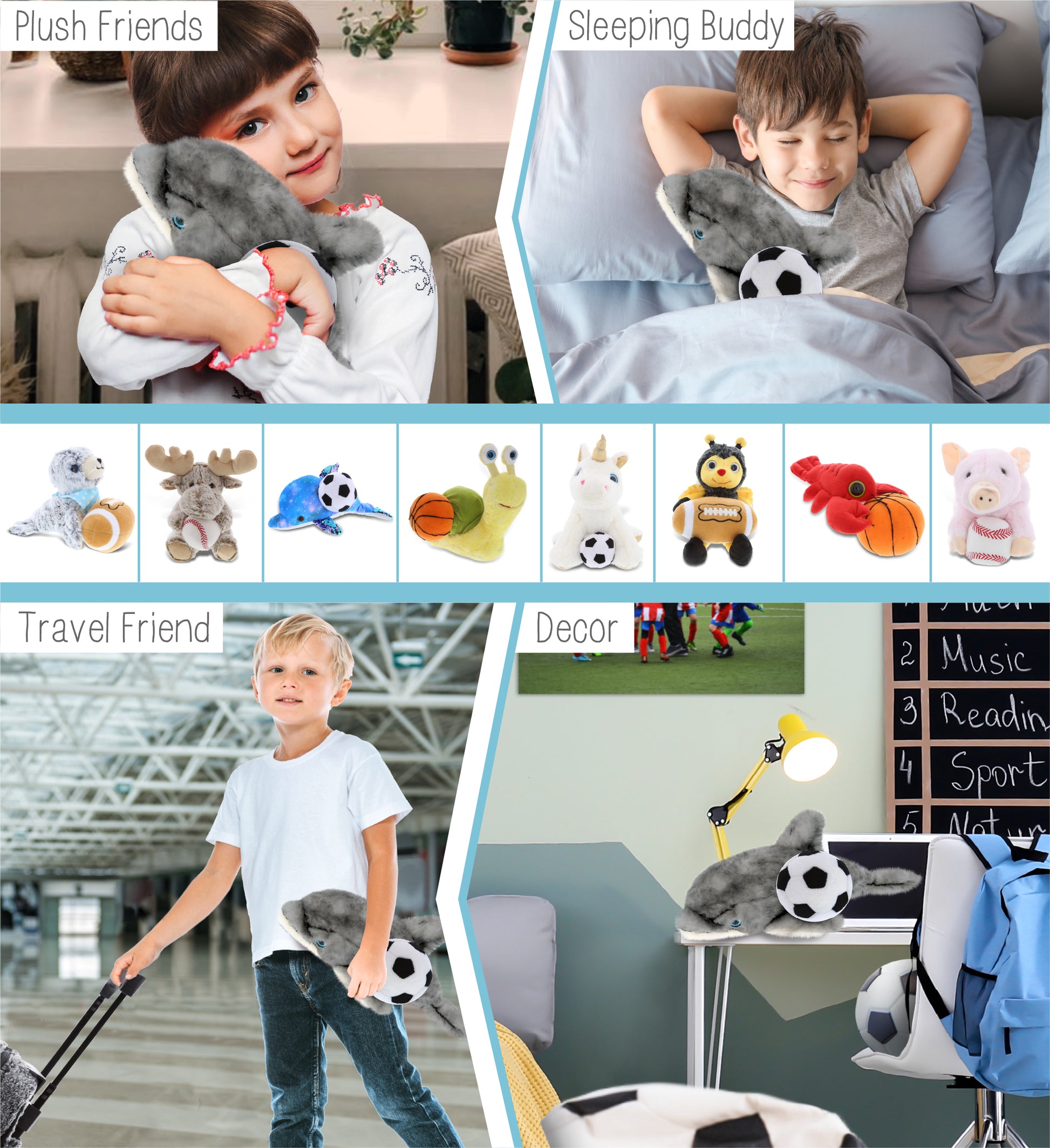 Included with the Purchase of the Cute Dolphin Plush - Includes 1 DolliBu Super Soft Grey Dolphin stuffed animal with a soccer ball plush, decorated with realistic features of a cute dolphin. The body with a sports gift ball plush makes the plush perfect for cuddles. The dolphin plush toy displays the cool details of a dolphin. The dolphin's eyes make the critter so charming. The cute dolphin plush toy buddy measures 16.5Lx7.5Wx6H inches.