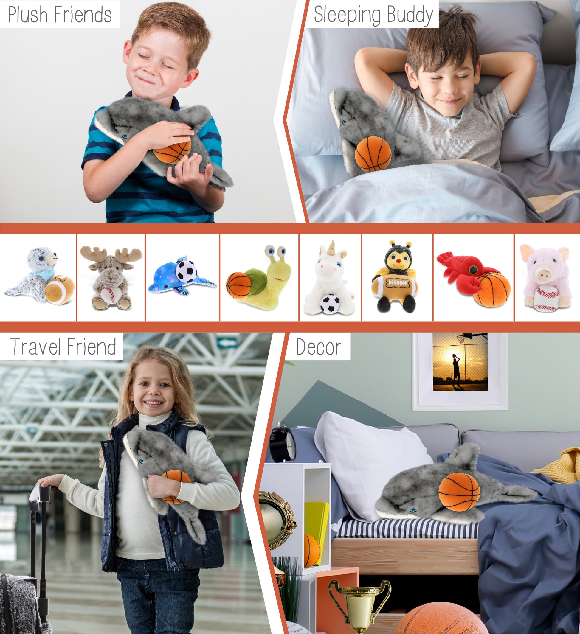 Included with the Purchase of Adorable Cute Dolphin Plush - Includes 1 DolliBu Super Soft Grey Dolphin with a basketball plush, decorated with realistic features of a cute plush animal. The body with a sports gift ball plush makes the plush perfect for cuddles. The dolphin plush toy features details like its characteristic fins. The dolphin eyes make the critter so charming. The plush toy buddy measures 16.5Lx7.5Wx6H inches.
