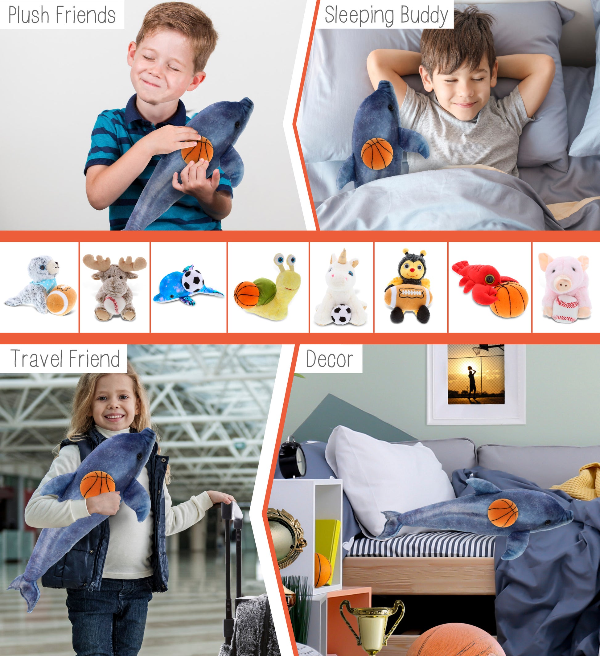 Included with the Purchase of Adorable Cute Dolphin Plush - Includes 1 DolliBu Wild Collection Dolphin with a basketball plush, decorated with realistic features of a cute plush animal. The dolphin's body with a sports gift ball plush makes the plush perfect for cuddles. The dolphin plush toy features details like its characteristic fins. The dolphin's eyes make the critter so charming. The plush toy buddy measures 19Lx10Wx6.5H inches.