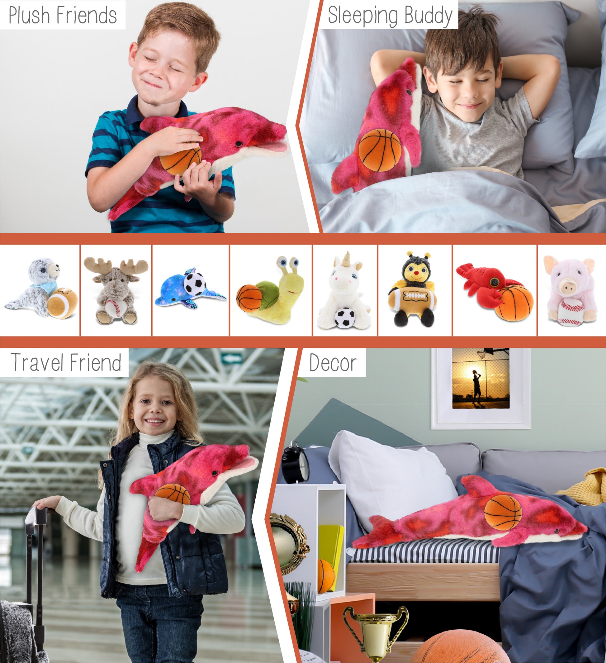 Included with the Purchase of Adorable Cute Dolphin Plush - Includes 1 DolliBu Super Soft Pink Tie-Dye Dolphin with a basketball plush, decorated with realistic features of a cute plush animal. The body with a sports gift ball plush makes the plush perfect for cuddles. The dolphin plush toy features details like its characteristic fins. The dolphin eyes make the critter so charming. The plush toy buddy measures 18Lx8.5Wx6H inches.