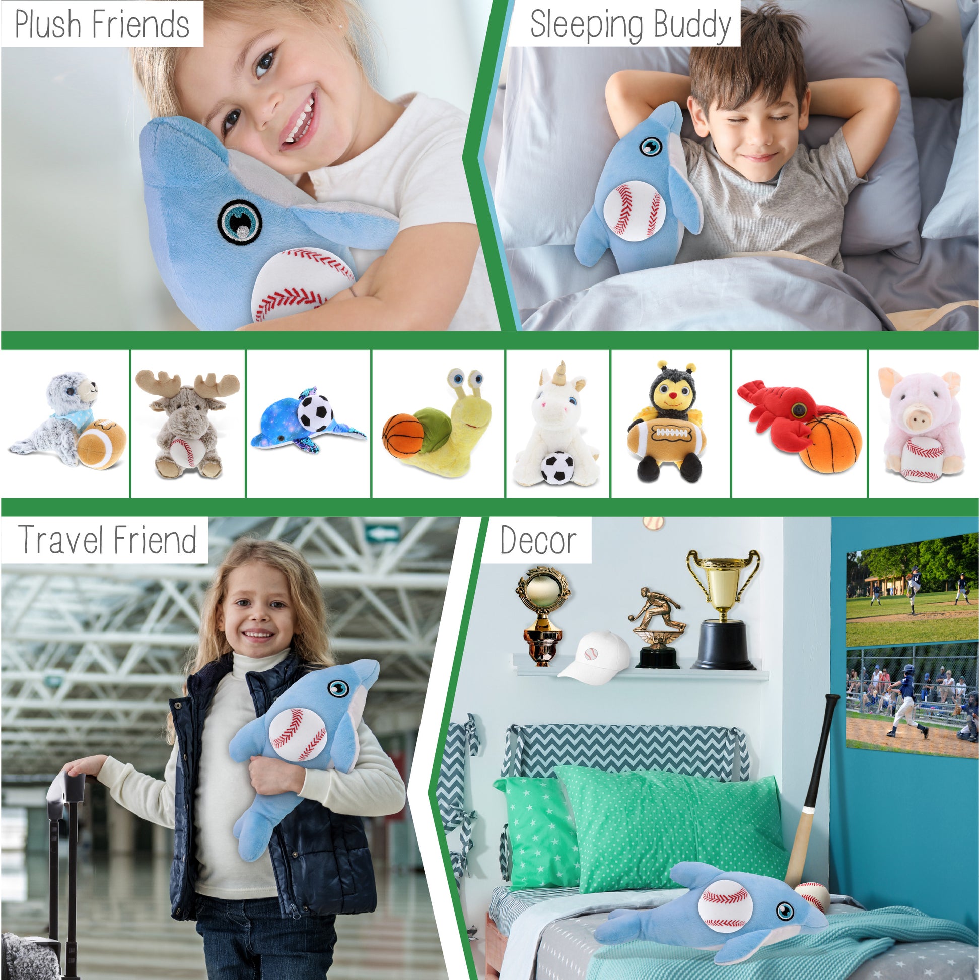 Ideal Use for the Kids Baseball Plush and Stuffed Dolphin - The dolphin baseball stuffed animal makes a great addition to your kids baseball stuff for boys collection. Great gifts for boys who love sports and plush dolls. If you're looking for the perfect baseball gift ideas for kids, this stuffed dolphin with baseball plush is the perfect choice. It's the perfect stuffed animal baseball birthday gifts to give on any special occasion.