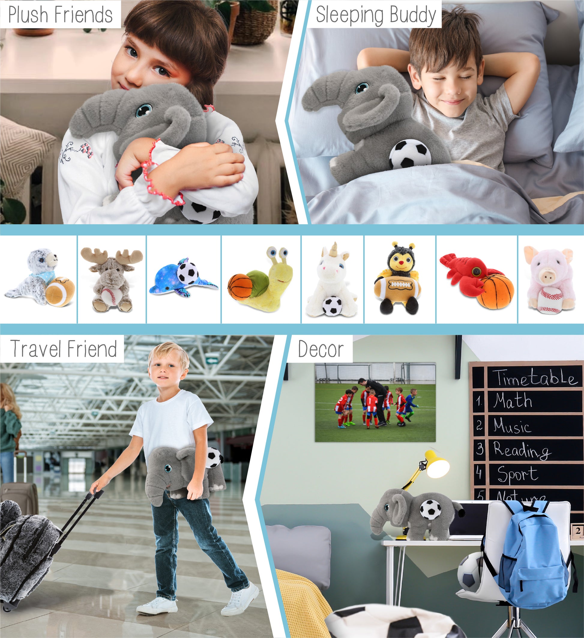 ECO FRIENDLY SUPER-SOFT PLUSH - ELEPHANT 14" With Soccer Plush