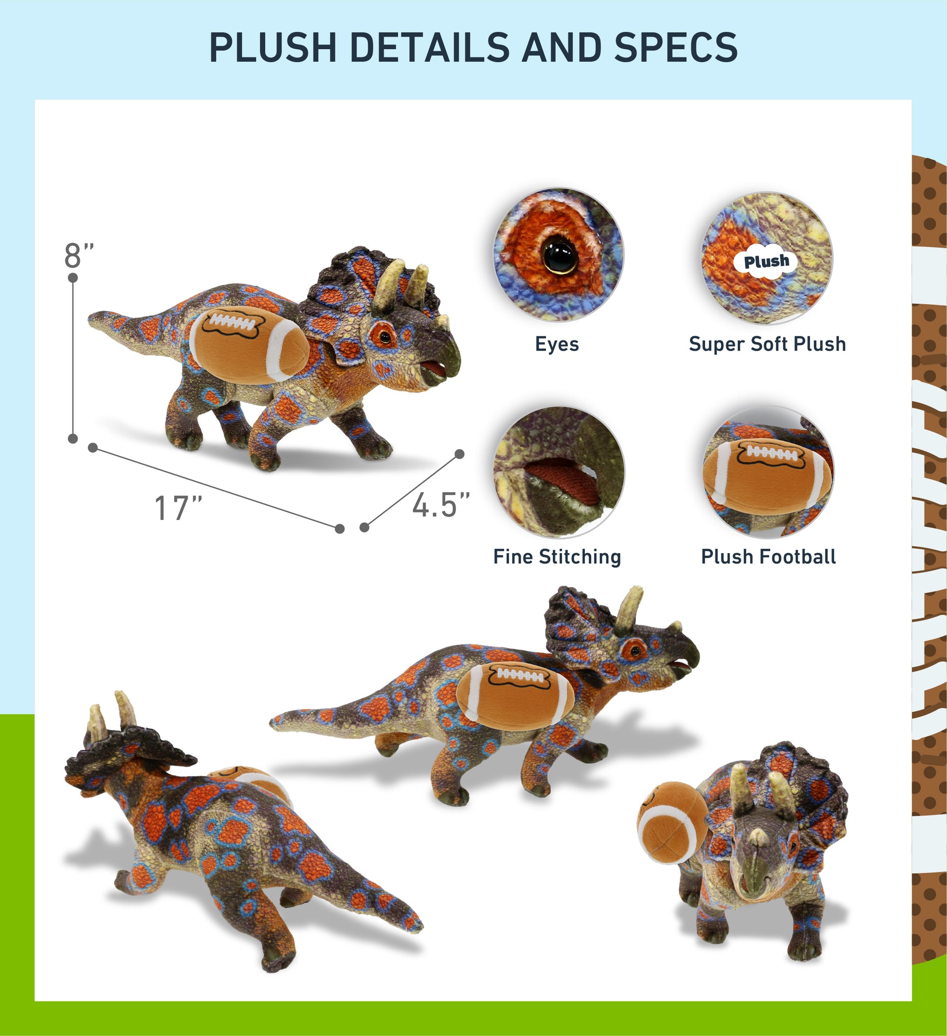 WILD COLLECTION PLUSH - TRICERATOPS DINOSAUR 17" WITH FOOTBALL PLUSH