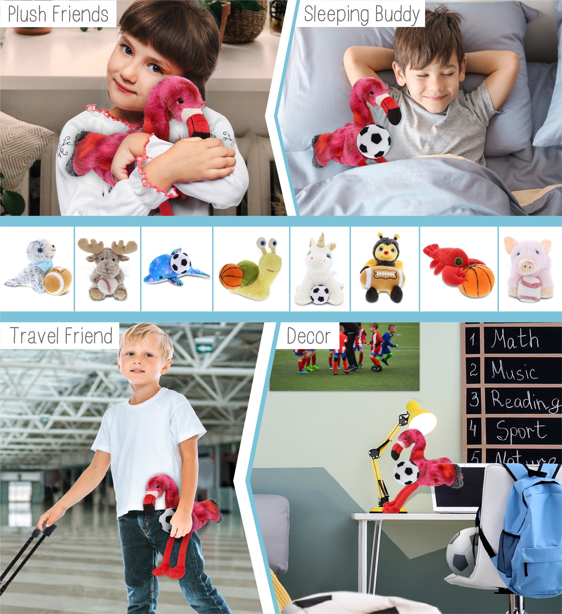 SUPER-SOFT PLUSH - PINK TIE-DYE FLAMINGO 8" with Soccer Plush