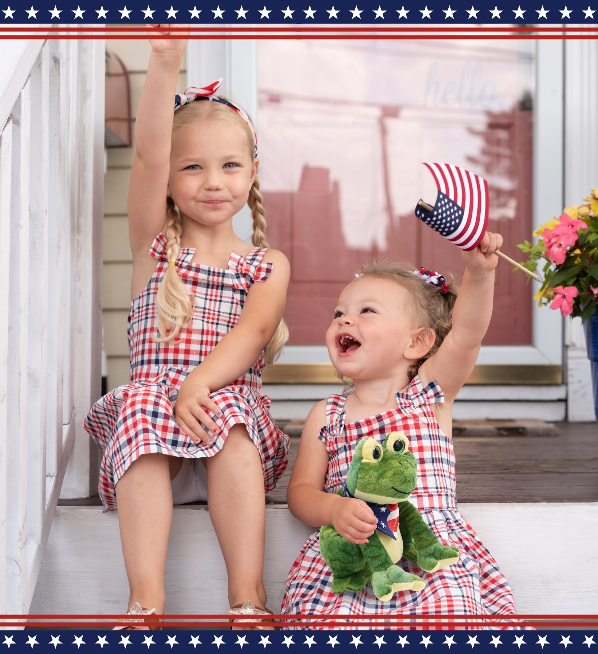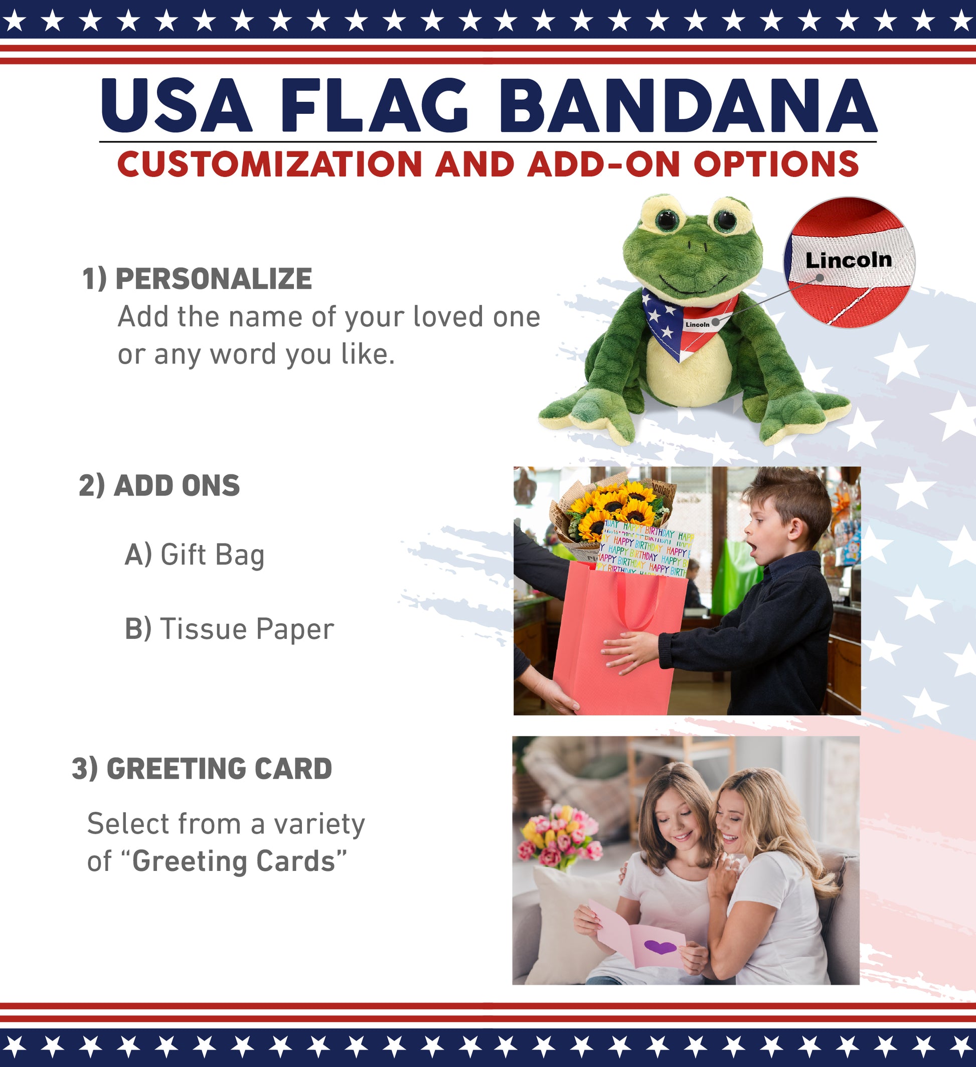 SUPER SOFT PLUSH - SQUAT FROG WITH USA FLAG BANDANA