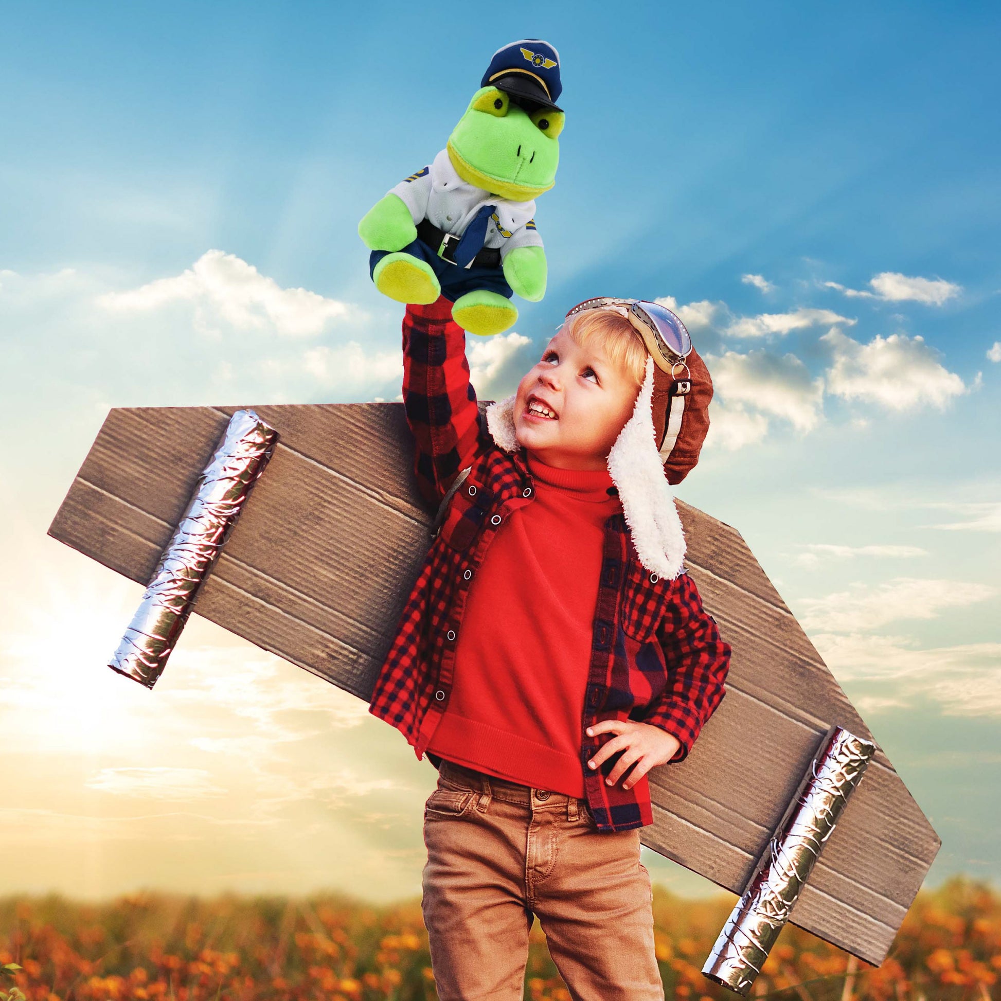Made of High-Quality Polyester - The frog plush pilot toy is made with super-soft, premium-quality polyester materials. The teddy bear stuffed animal is designed for everyday hugs and dress up fun. The pilot plush frog is a fun option for kids who love imaginative play and aviation toys. It is a perfect addition to your collection of pilot accessories for stuffed animals, airline outfit for stuffed toys, and plush accessories.