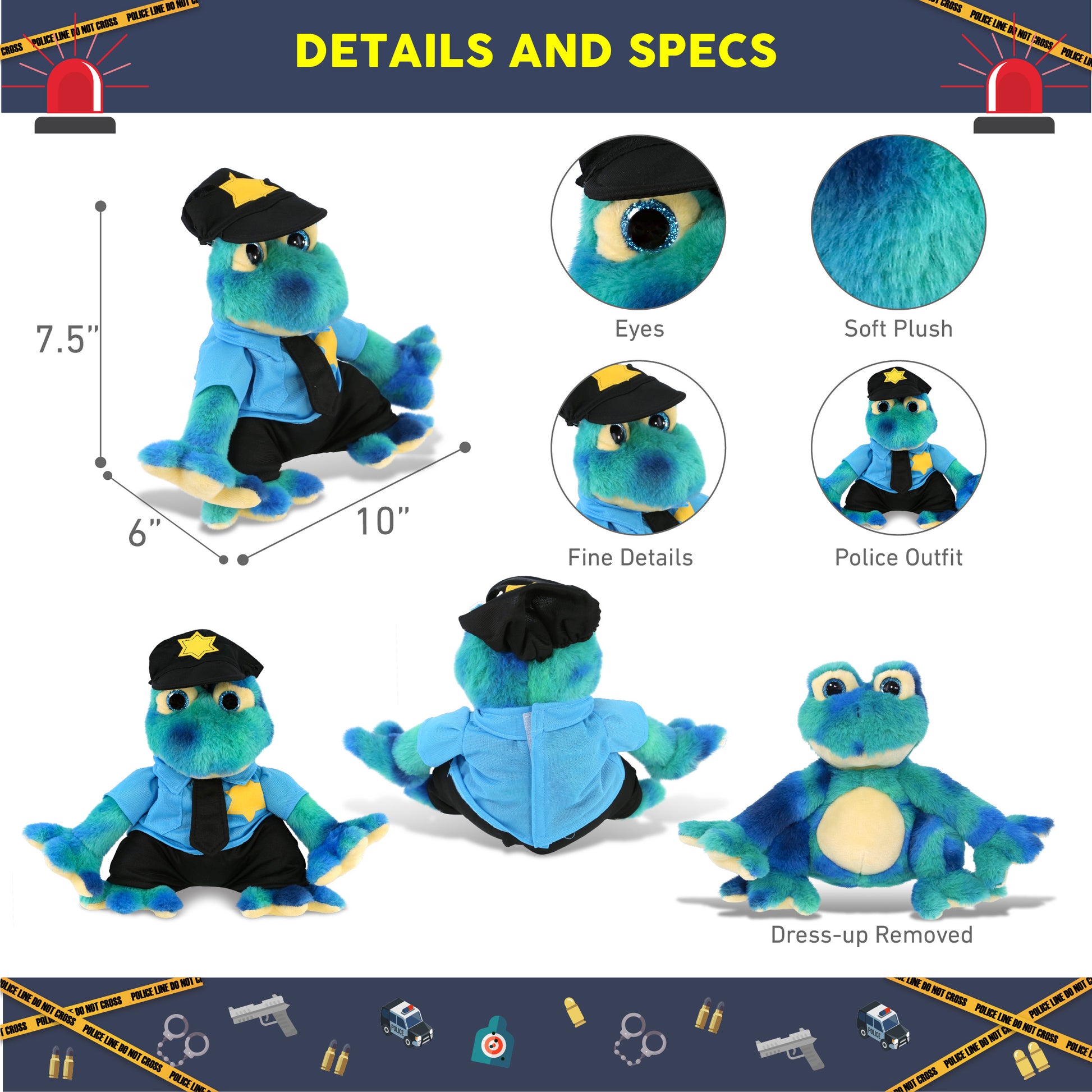 High-Quality Police Officer Plush Animal - The frog stuffed animal is a cute and cuddly plush, made from premium-quality polyester and stuffed with soft fillings. Covered with super soft, fluffy plush. A snuggly wild animal crafted with durable materials designed to inspire your future cop and make them feel protected in an adorable way. To maintain the cleanliness of the frog plush, surface wash with cold water and allow to air dry.