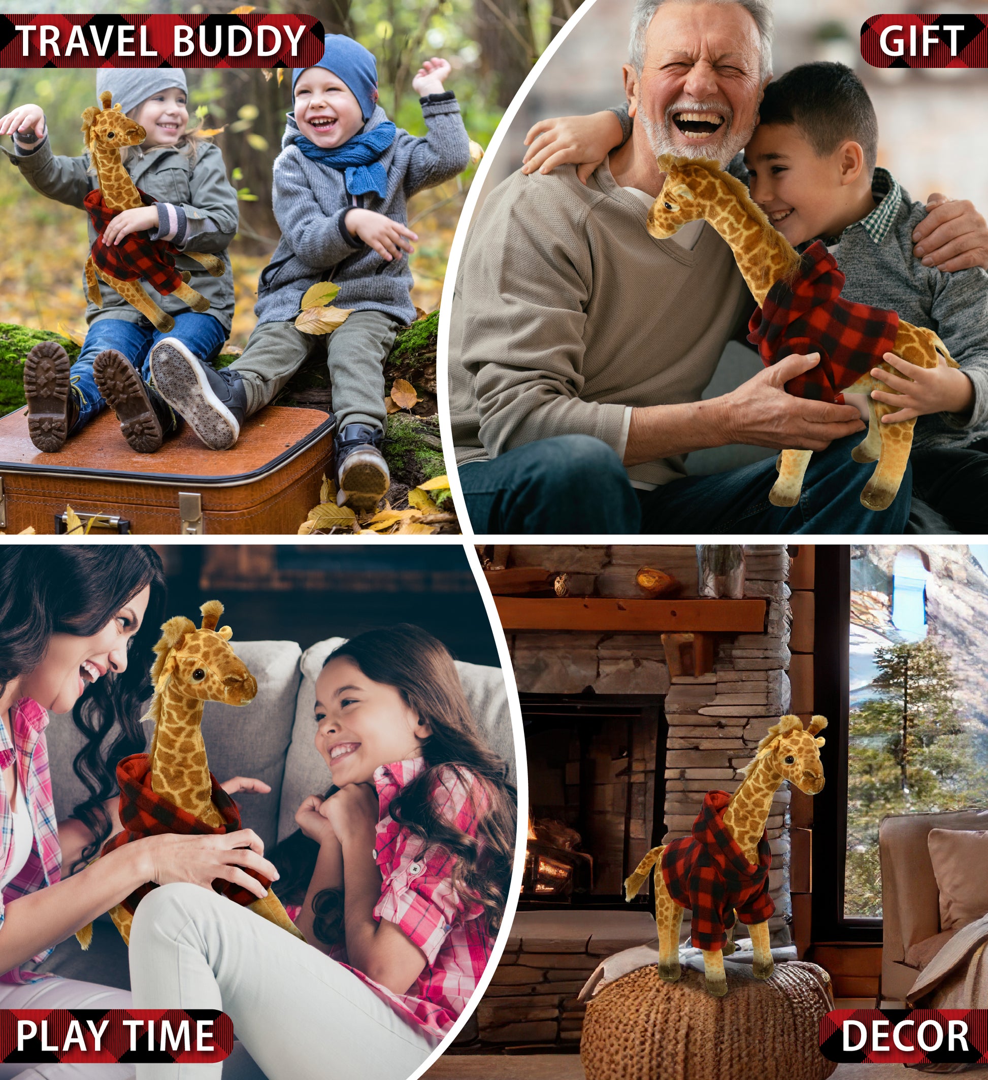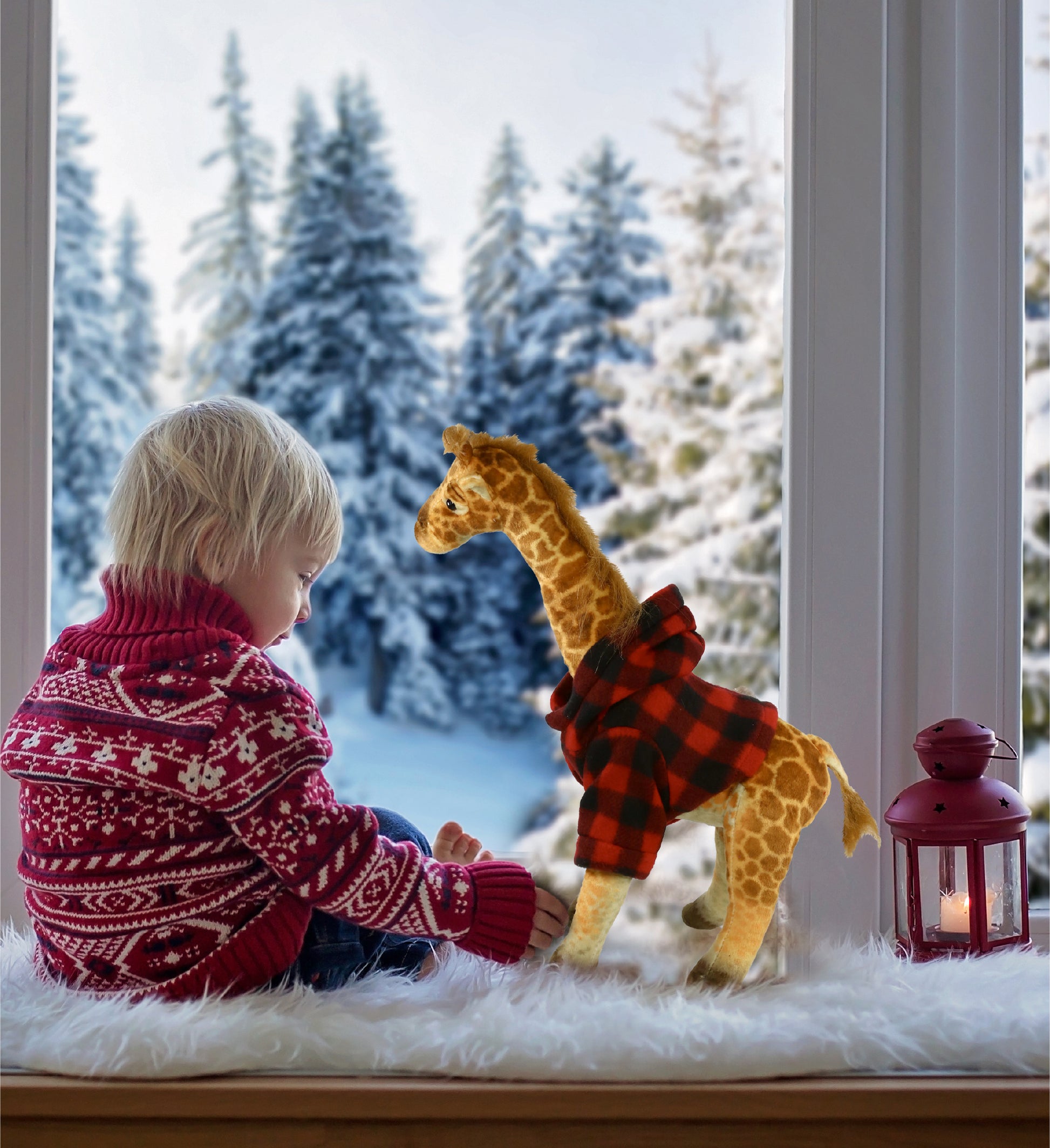 Ideal Use for The Giraffe with Plush Clothes - The giraffe winter plush is the ultimate stuffed teddy bear buddy! Whether on a shelf as holiday decor or as Christmas teddy bear gift, the giraffe adds a touch of winter warmth wherever it goes. With its red plaid shirt, the giraffe plush is great for winter nights and joyful holiday memories. Warm your home this winter season with cute stuffed animals wearing red plaid flannel shirt.