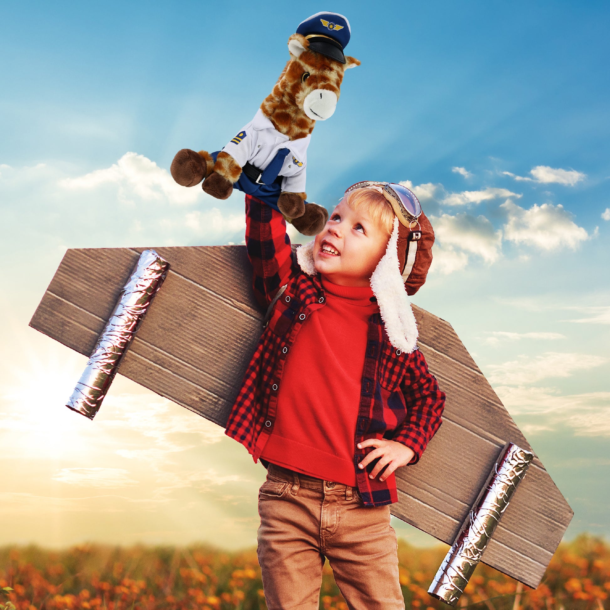 Made of High-Quality Polyester - The giraffe plush pilot toy is made with super-soft, premium-quality polyester materials. The teddy bear stuffed animal is designed for everyday hugs and dress up fun. The pilot plush giraffe is a fun option for kids who love imaginative play and aviation toys. It is a perfect addition to your collection of pilot accessories for stuffed animals, airline outfit for stuffed toys, and plush accessories.