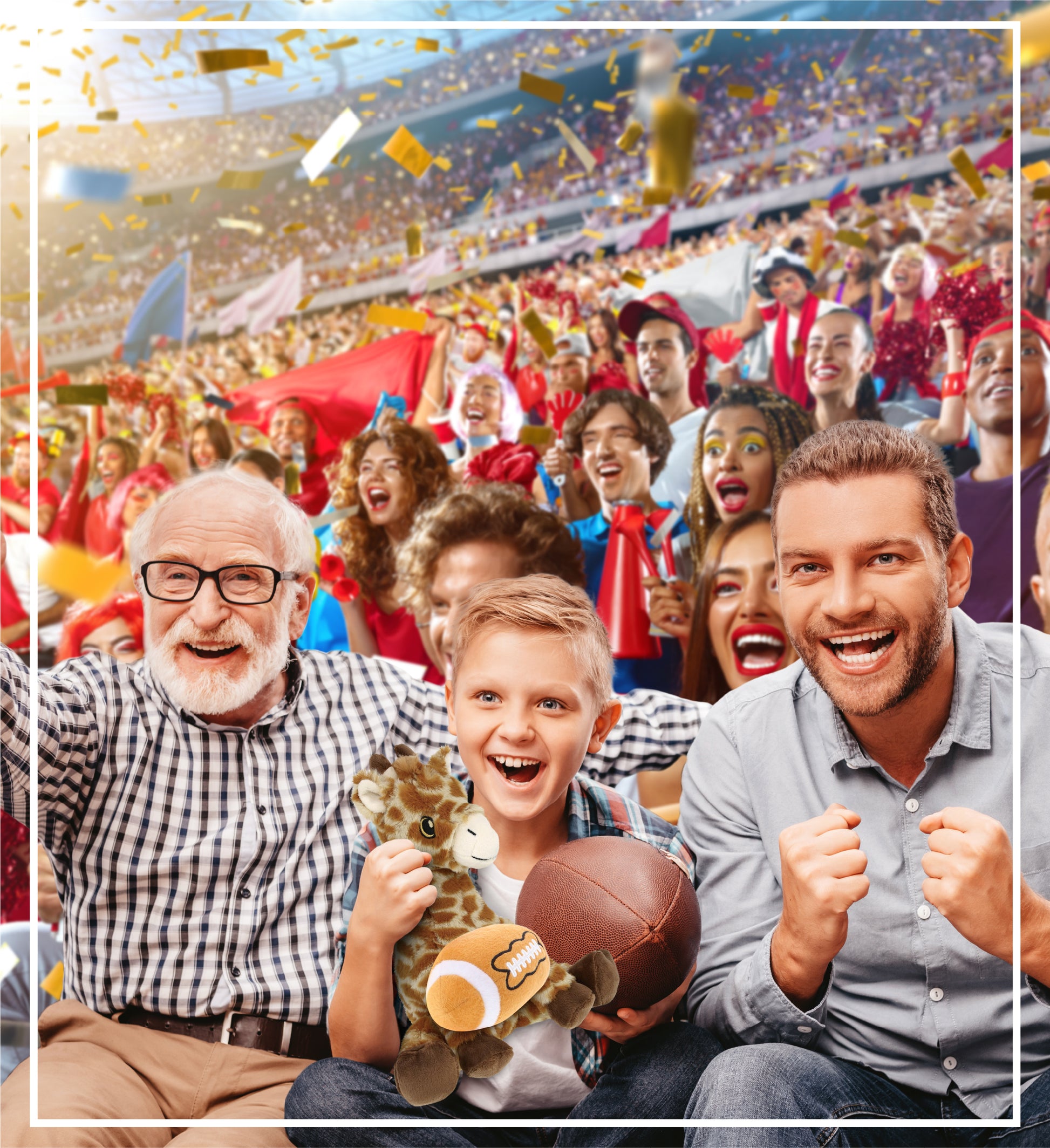 Personalization, Customization, and Add-On Options - This Super Soft Sports Stuffed Animal Eco-Friendly Giraffe Plush comes customized with a football plush. You can personalize it with the name of your loved one imprinted on the item. You also have the option to add some or all of the cool add-ons to make your gift extra special: 1) Gift Bag; 2) Tissue Paper; 3) Greeting Card.