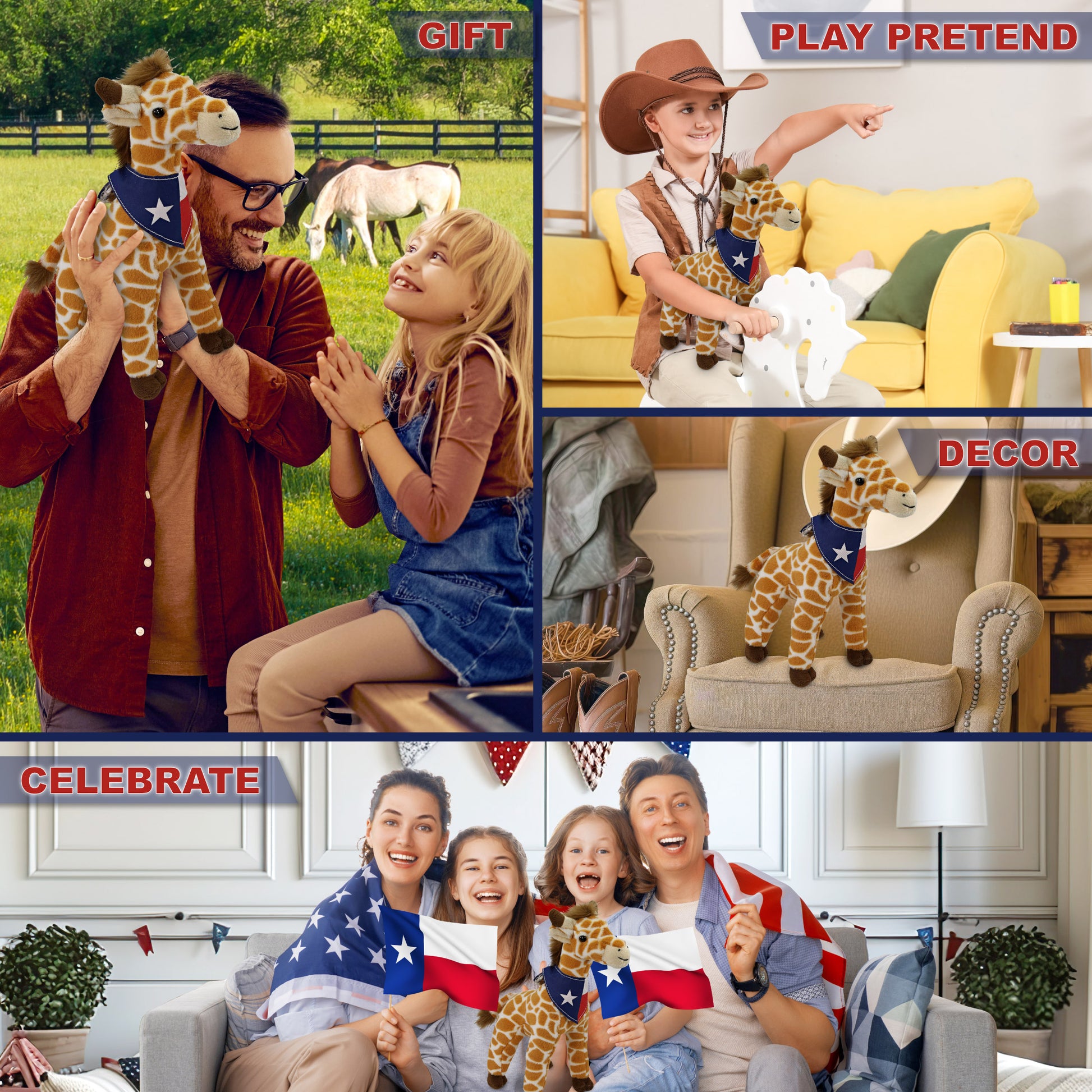 Perfect Wildlife Animal Wild Giraffe Plush Toy for Those Who Love Texas - Looking for Texas souvenirs, bear plush toys, or western gifts? This giraffe with a red, blue, and white Texas flag bandana is a fun choice. Ideal for gifting to cowboy fans, decor for Texas holidays or Memorial Day, or adding to a cowboy teddy bear collection. Great for collectors of cowboy stuff and stuffed animal clothing to show their Texan pride.
