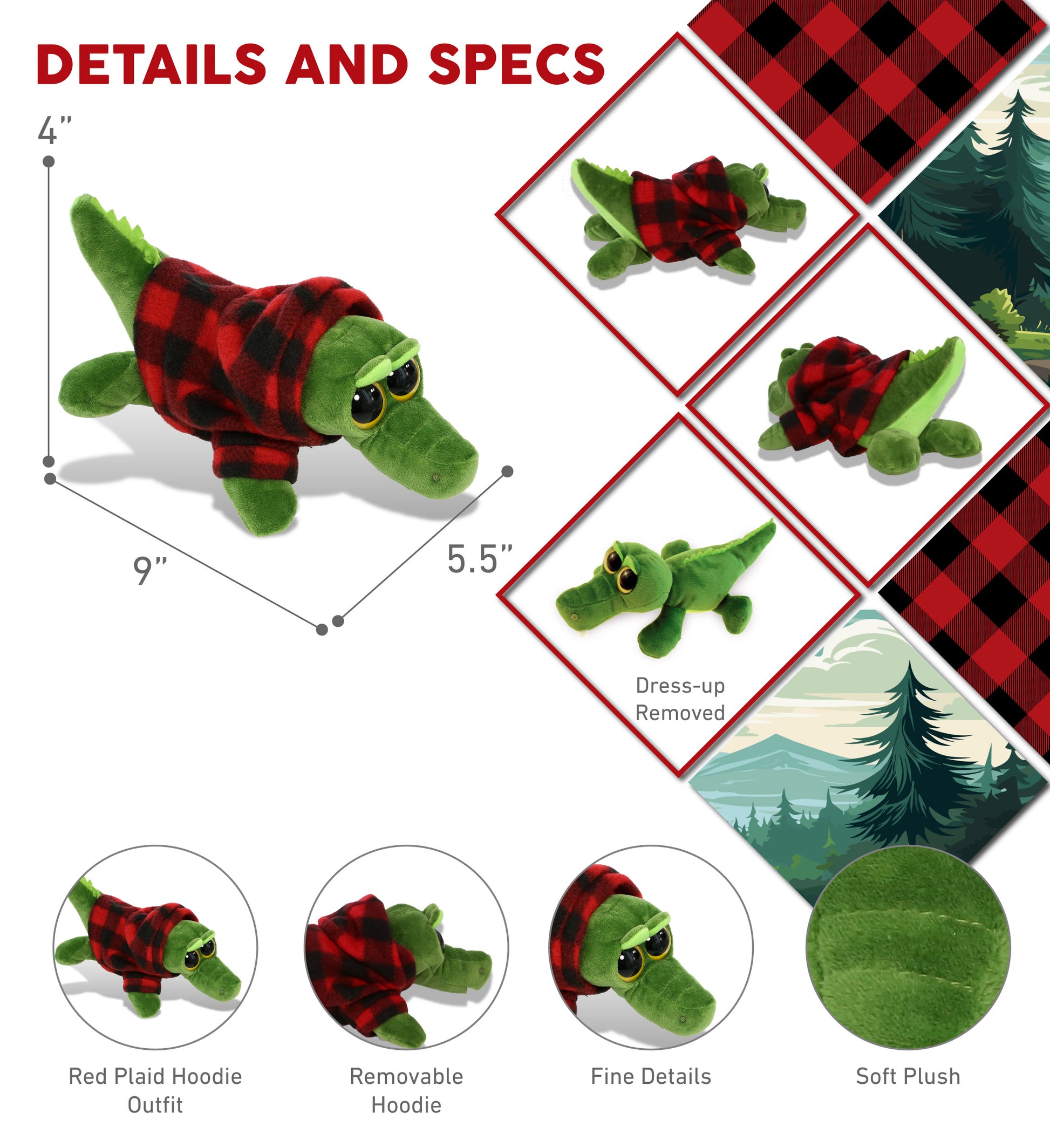 INCLUDED WITH THE PURCHASE OF ALLIGATOR PLUSH WITH RED PLAID HOODIE JACKET - Includes 1 Big Eye Alligator with Red Flannel Plaid Shirt. Dressed in a flannel hooded jacket, this stuffed gator is all about comfort and style, making it the perfect addition to your Christmas plush animals decor under your Christmas tree, ready to join you for your holiday photos or family gatherings. The gator with cute red checkered shirt measures 5.5Lx6Wx6H inches.