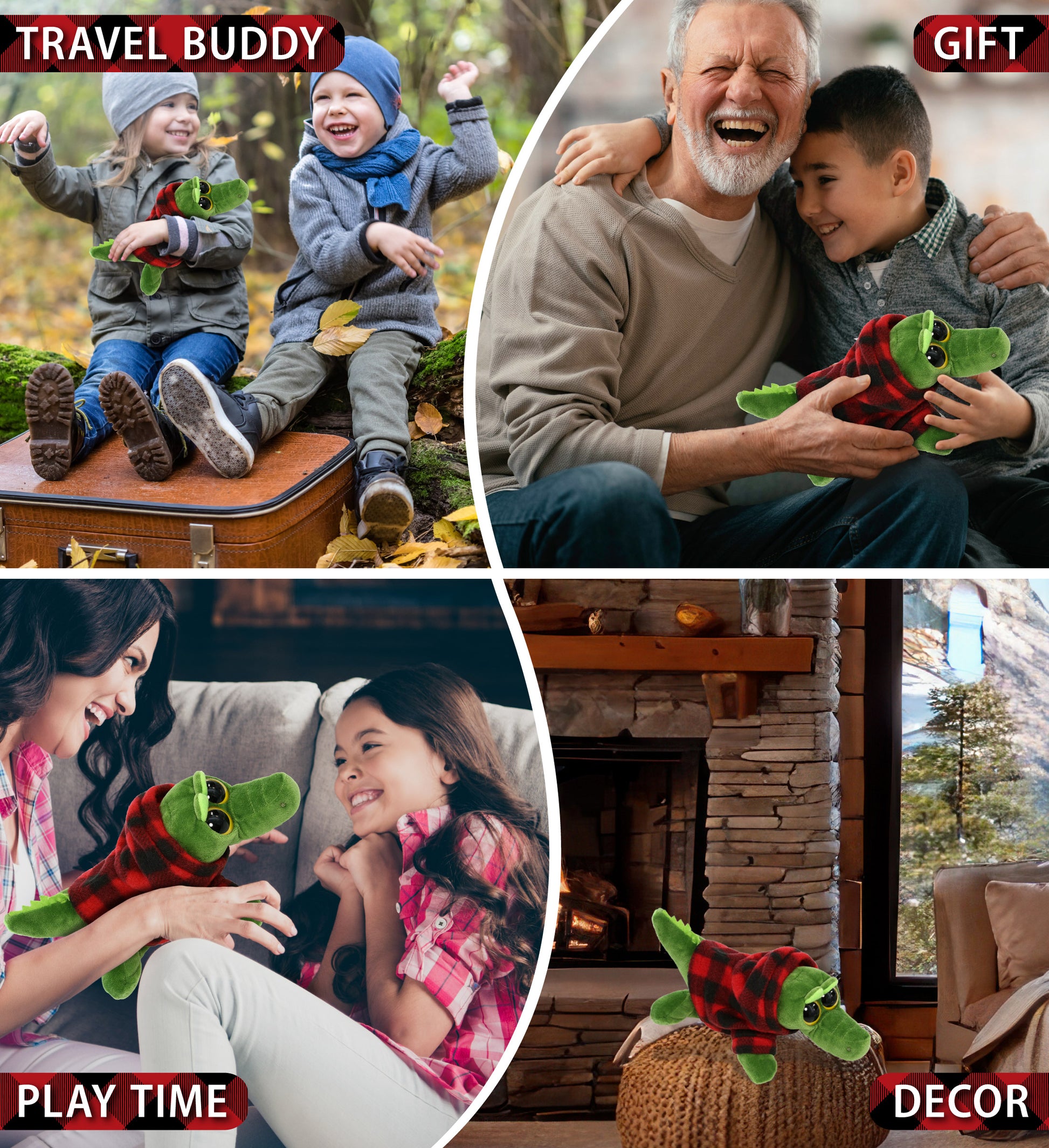 HIGH-QUALITY LUMBERJACK STUFFED ANIMAL - The alligator stuffed toy is made from high-quality 100% polyester to ensure long-lasting comfort and durability, making it a perfect holiday buddy. It's black and red flannel shirt, paired with a soft plaid hoodie, gives this plush a festive, wintery look that’s perfect for holiday decor or as a thoughtful stuffed animals Christmas gift for loved ones. A heartwarming addition to your holiday traditions!