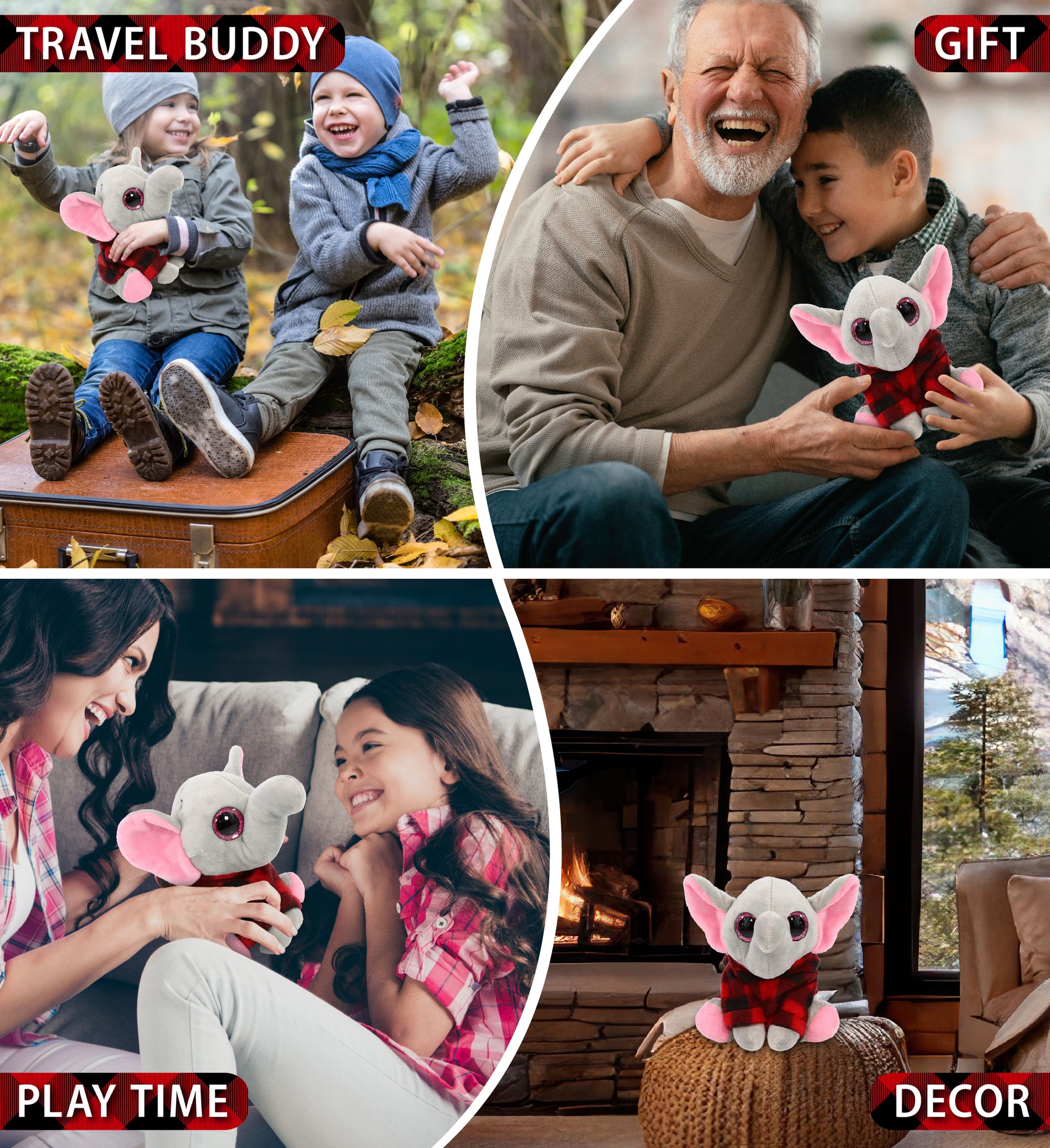 IDEAL USE FOR THE ELEPHANT WITH PLUSH CLOTHES - The small elephant winter plush is the ultimate stuffed teddy bear cuddle buddy! Whether it’s on a shelf as holiday decor or a Christmas teddy bear gift, this elephant adds a touch of winter warmth wherever it goes. With its red plaid shirt, the plush is great for winter nights and joyful holiday memories. Warm your home this winter season with cute stuffed animals wearing red plaid flannel shirt.