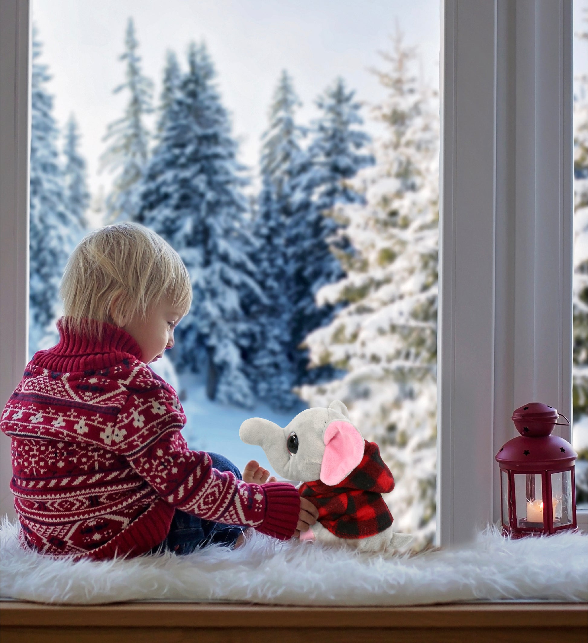 INCLUDED WITH THE PURCHASE OF ELEPHANT PLUSH WITH RED PLAID HOODIE JACKET - Includes 1 Sparkle Eyes Small Elephant with Red Flannel Plaid Shirt. Dressed in a flannel hooded jacket, which is all about comfort and style, making it the perfect addition to your Christmas plush animals decor under your Christmas tree, ready to join you for your holiday photos or family gatherings. The elephant with cute red checkered shirt measures 4.75Lx6.5Wx6H inches.