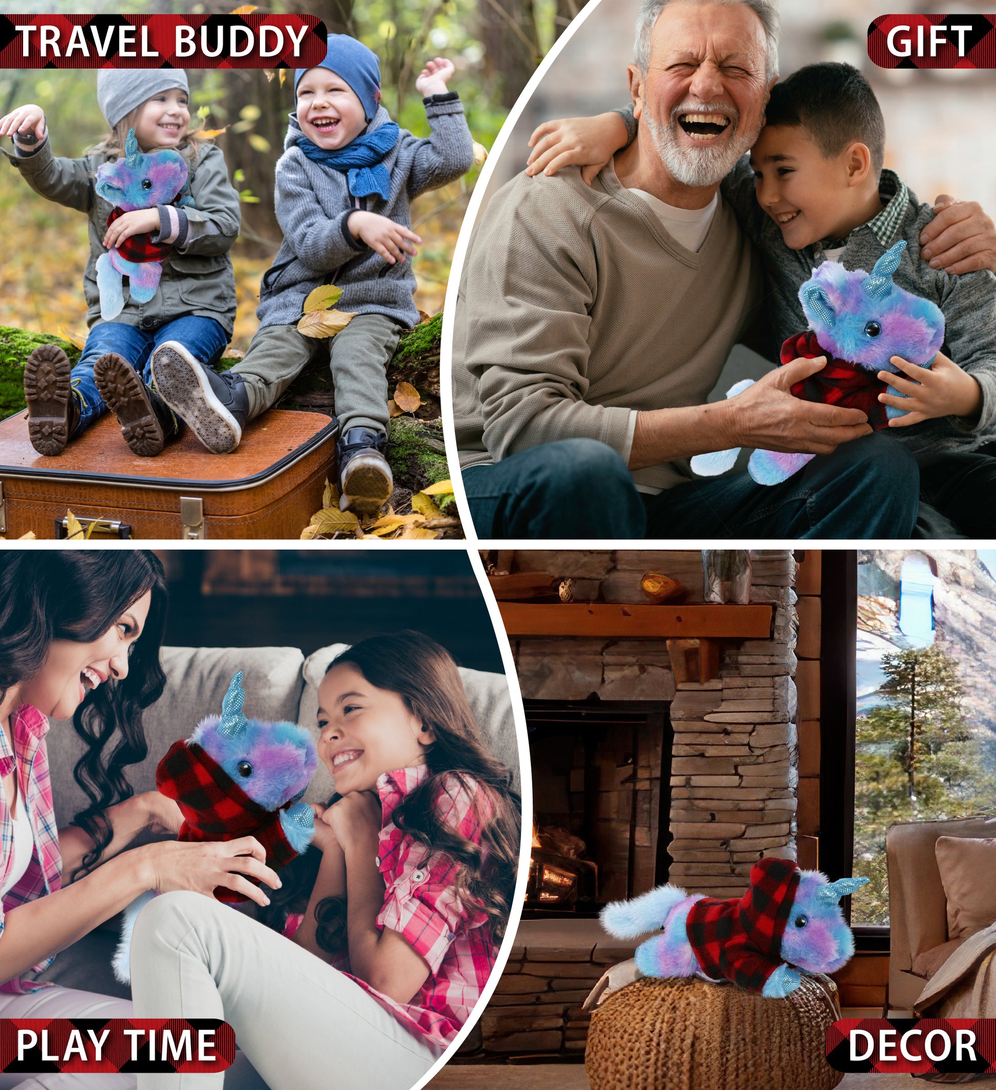 IDEAL USE FOR THE UNICORN WITH PLUSH CLOTHES - The unicorn winter plush is the ultimate stuffed teddy bear cuddle buddy! Whether it’s on a shelf as holiday decor or a Christmas teddy bear gift, this unicorn adds a touch of winter warmth wherever it goes. With its red plaid shirt, the unicorn plush is great for winter nights and joyful holiday memories. Warm your home this winter season with cute stuffed animals wearing red plaid flannel shirt.