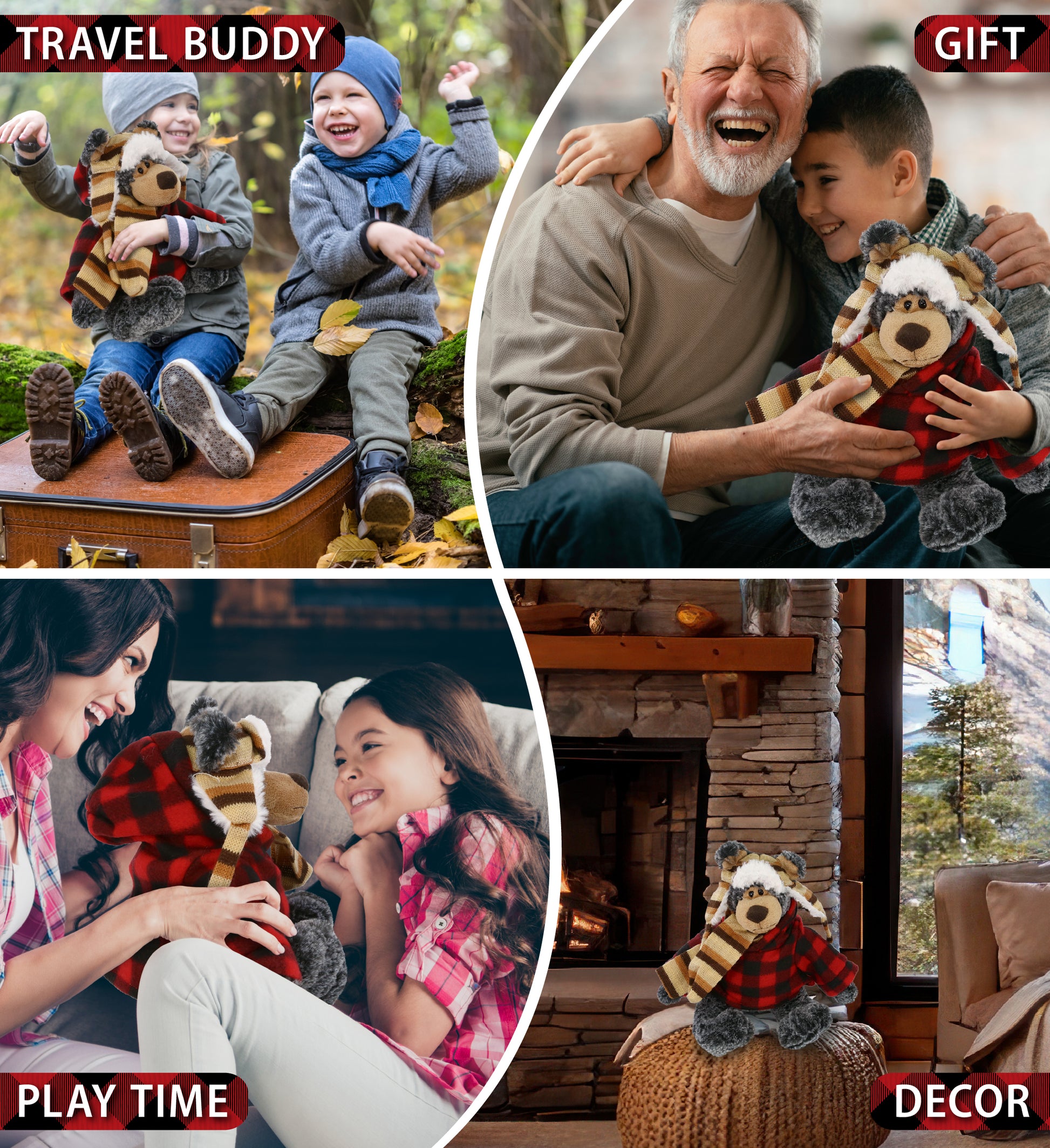 IDEAL USE FOR THE BEAR WITH PLUSH CLOTHES - The black bear winter plush is the ultimate stuffed teddy bear cuddle buddy! Whether it’s on a shelf as holiday decor or a Christmas teddy bear gift, this black bear adds a touch of winter warmth wherever it goes. With its red plaid shirt, the bear plush is great for winter nights and joyful holiday memories. Warm your home this winter season with cute stuffed animals wearing red plaid flannel shirt.