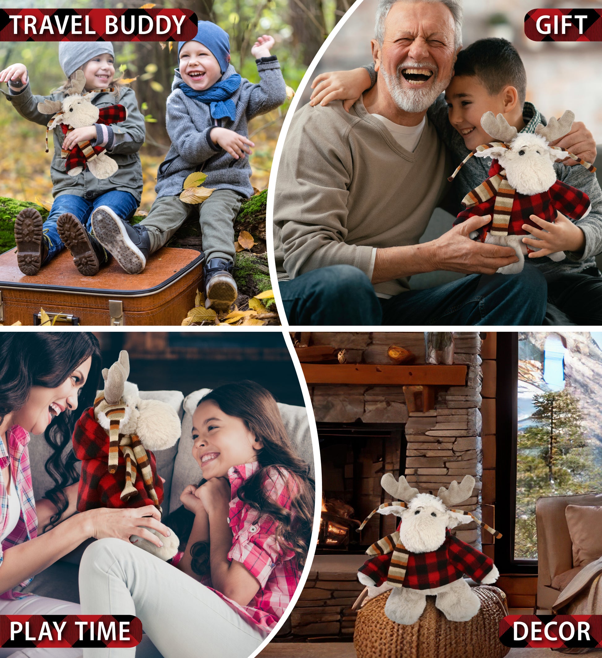 IDEAL USE FOR THE MOOSE WITH PLUSH CLOTHES - The Standing Moose winter plush is the ultimate stuffed teddy bear cuddle buddy! Whether it’s on a shelf as holiday decor or a Christmas teddy bear gift, this moose adds a touch of winter warmth wherever it goes. With its red plaid shirt, the moose plush is great for winter nights and joyful holiday memories. Warm your home this winter season with cute stuffed animals wearing red plaid flannel shirt.