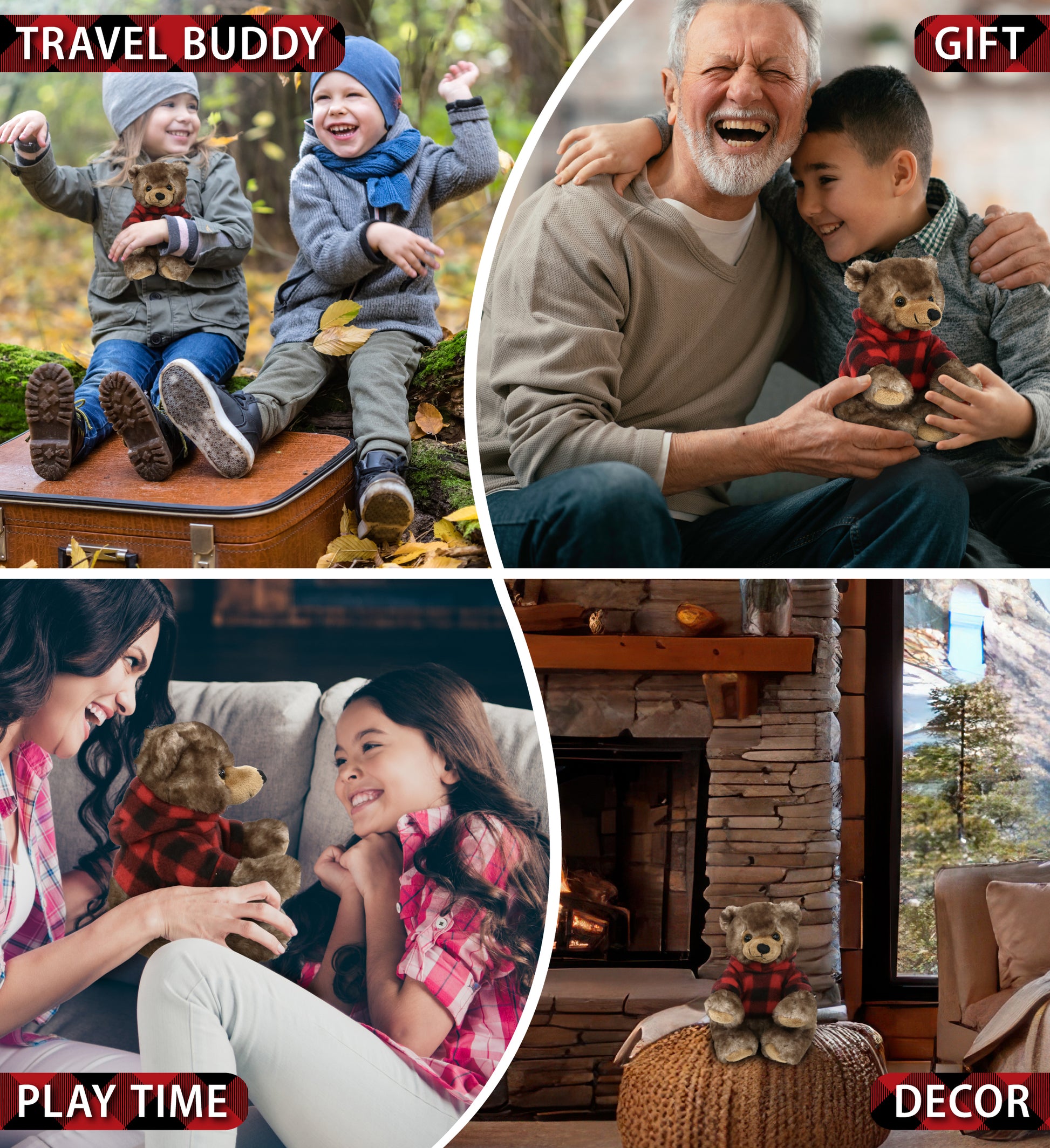 IDEAL USE FOR THE BEAR WITH PLUSH CLOTHES - The bear winter plush is your stuffed teddy bear cuddle buddy! Whether it’s on a shelf as holiday decor or a Christmas teddy bear gift, this grizzly bear adds a touch of winter warmth wherever it goes. With its red plaid shirt, the grizzly bear plush is great for winter nights and joyful holiday memories. Warm your home this winter season with cute stuffed animals wearing red plaid flannel shirt.