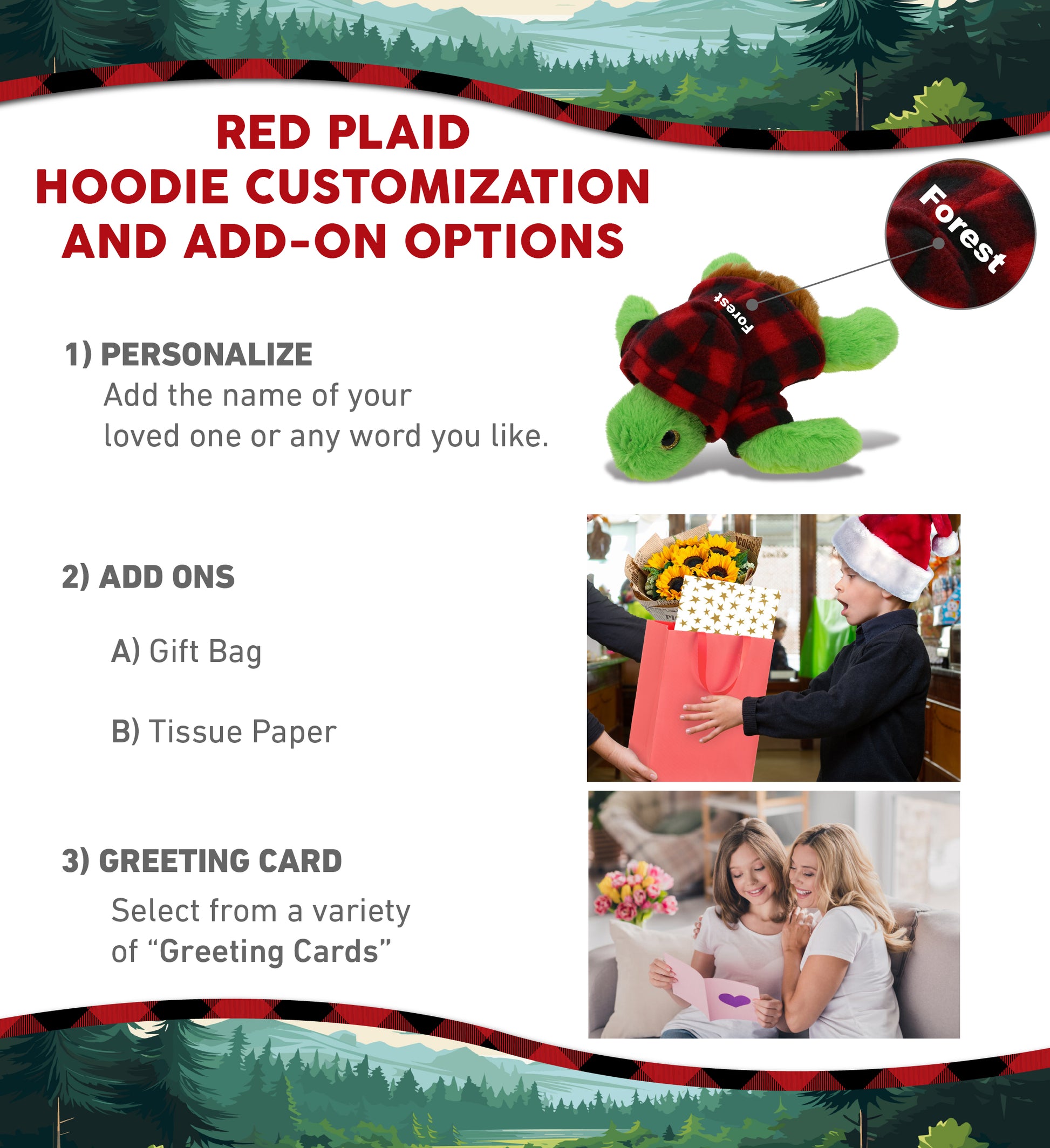 BIG EYE PLUSH - SEA TURTLE WITH RED PLAID HOODIE