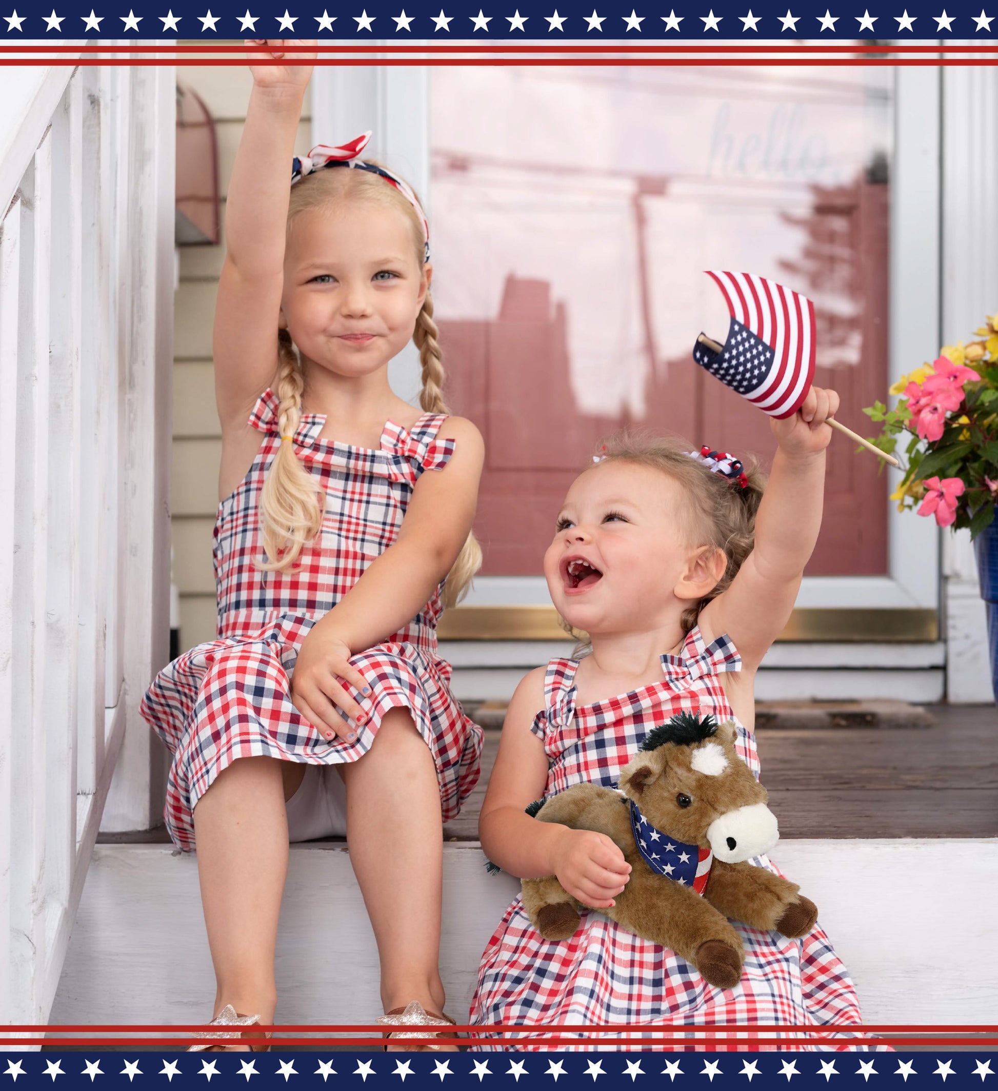 Personalization, Customization, and Add-On Options - The stuffed horse plush toy comes dressed with a removable USA Flag Bandana to give a unique patriotic twist. Make the plush horse toy cool and unique by personalizing it with the name, which we will imprint directly onto the plush. You can also customize your plush horse by adding any of our add-ons to create the perfect gift: 1) Gift Bag 2) Tissue Paper 3) Greeting Card.