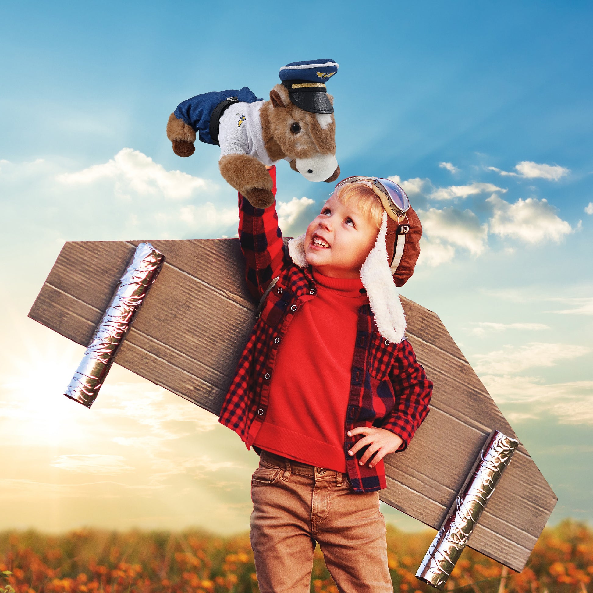 The Pilot Stuffed Lying Brown Horse Plush is Perfect for Aviation Lovers - Everyone who loves aviation will be thrilled to have a pilot stuffed bear, whether it’s a cute stuffed animal gift or a cute teddy bear plush for aviation-themed collections. Perfect pilot fluffy stuffed animal for flight pretend play and as a pilot horse toy gifts for kids who aspire to be pilots when they grow up. Recommended for ages 3 and up.