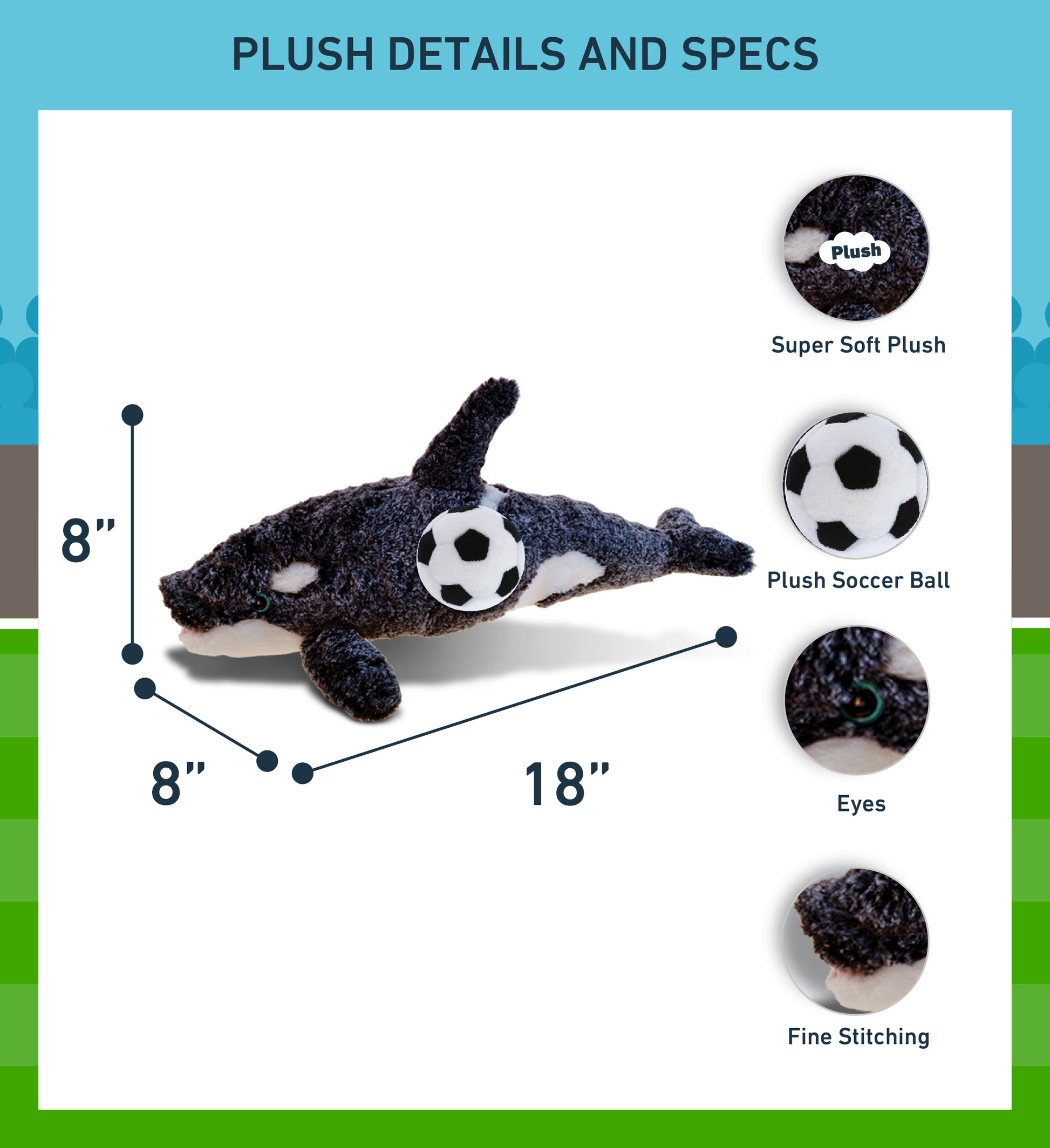 PERSONALIZATION, CUSTOMIZATION, AND ADD-ON OPTIONS - Super Soft Sports Stuffed Animal Killer Whale comes customized with a Soccer Ball Plush. You can personalize it with the name of your loved one imprinted on the item. You also have the option to add some or all of the cool add-ons to make your gift extra special: 1) Gift Bag; 2) Tissue Paper; 3) Greeting Card.