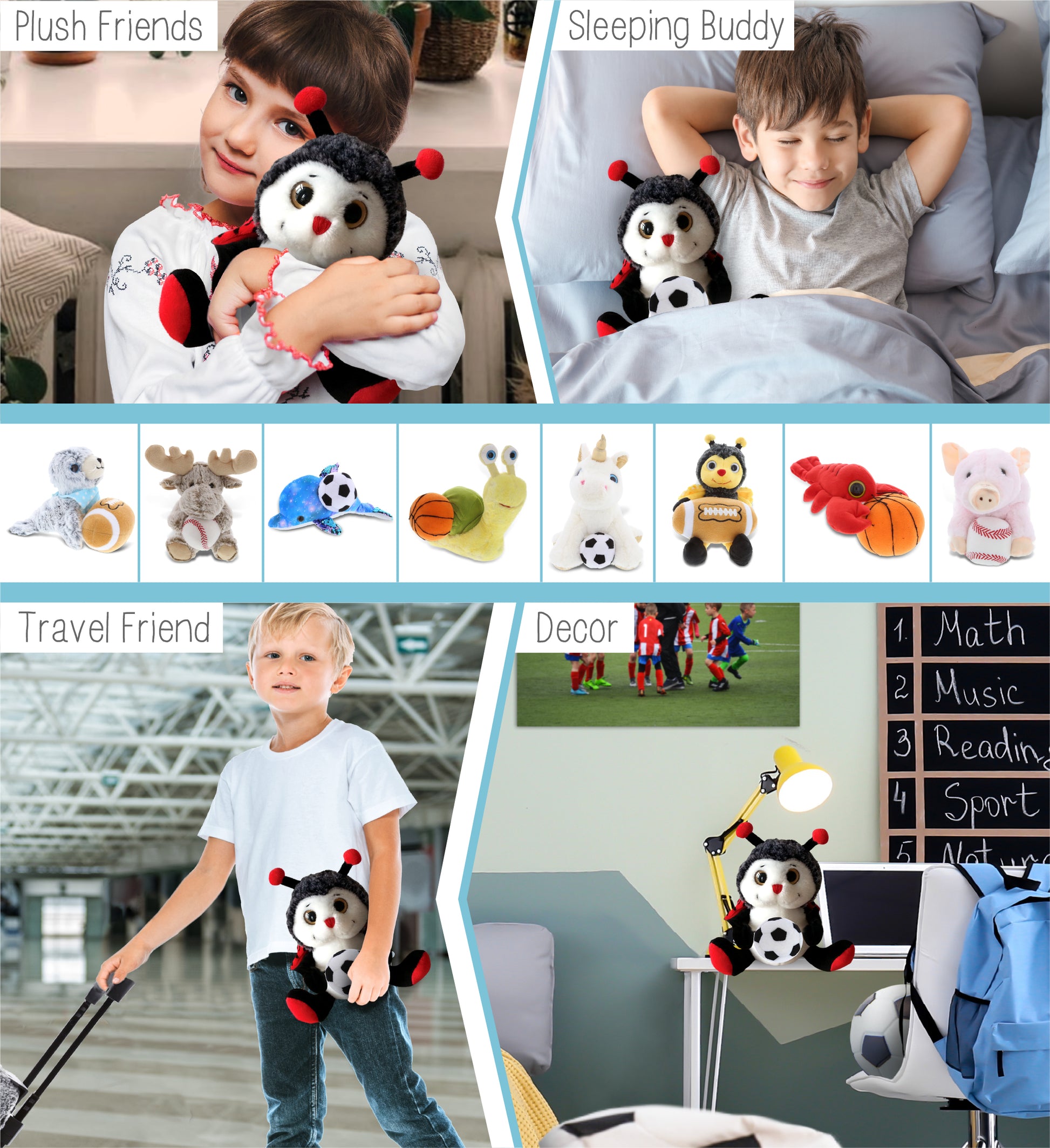 HIGH QUALITY SUPER SOFT PLUSH STUFFED ANIMAL - The machine-sewn ladybug toy plush and soccer ball is made of premium-quality polyester, stuffed with soft fluffy polyester fillings. Made with durable and child-friendly features. Cute and snuggly ladybug sitting down upright. Cute soft toys designed to be your little one's best buddies. To maintain fluffy stuffed animals, wash ladybug plush toys with cold soapy water and allow it to air dry.