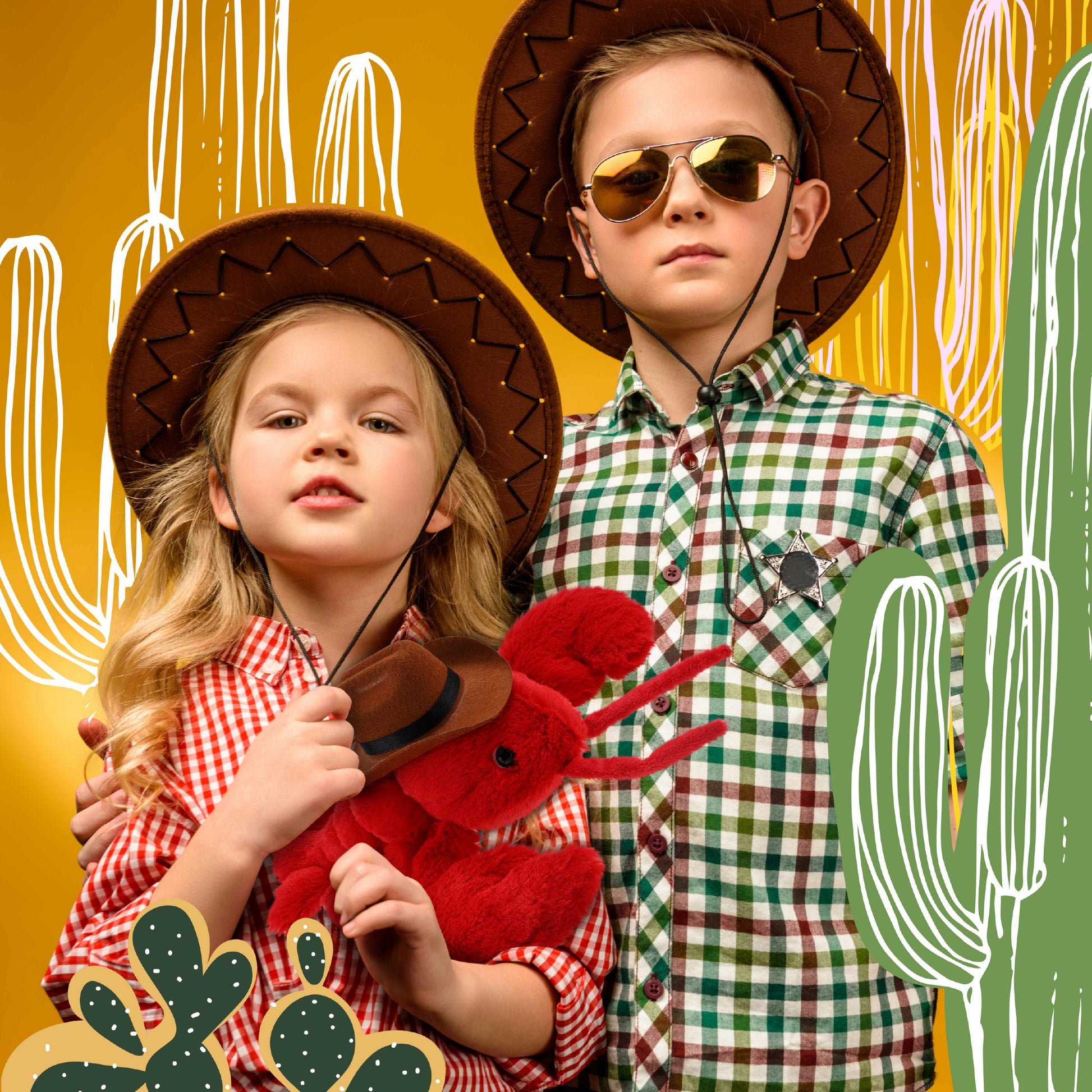 Made of High-Quality Polyester - The cowboy plush doll hat and the plush toy red lobster are crafted with super soft, durable, premium-quality polyester materials. This cute plush is built to last through animal cowboy showdown. The cowboy stuff hat can be easily put on any stuffed animal doll. Perfectly built to withstand everyday cuddles.