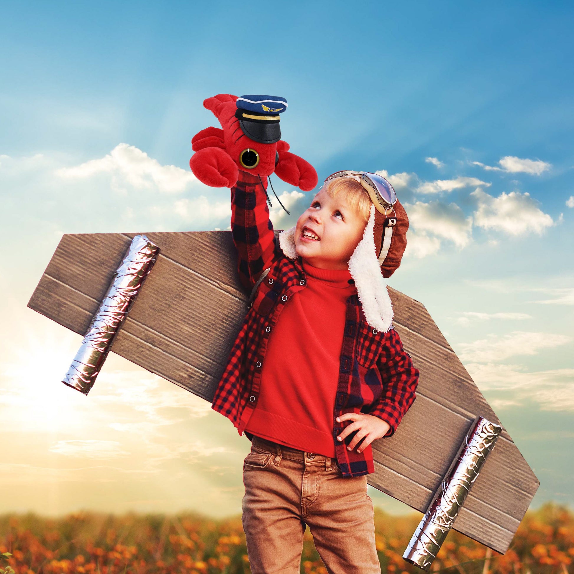 The Pilot Stuffed Big Eye Lobster Plush is Perfect for Aviation Lovers - Everyone who loves aviation will be thrilled to have a pilot stuffed lobster, whether it’s a cute stuffed animal gift or a cute teddy bear plush for aviation-themed collections. Perfect pilot fluffy stuffed animal for flight pretend play and as a pilot lobster toy gifts for kids who aspire to be pilots when they grow up. Recommended for ages 3 and up.