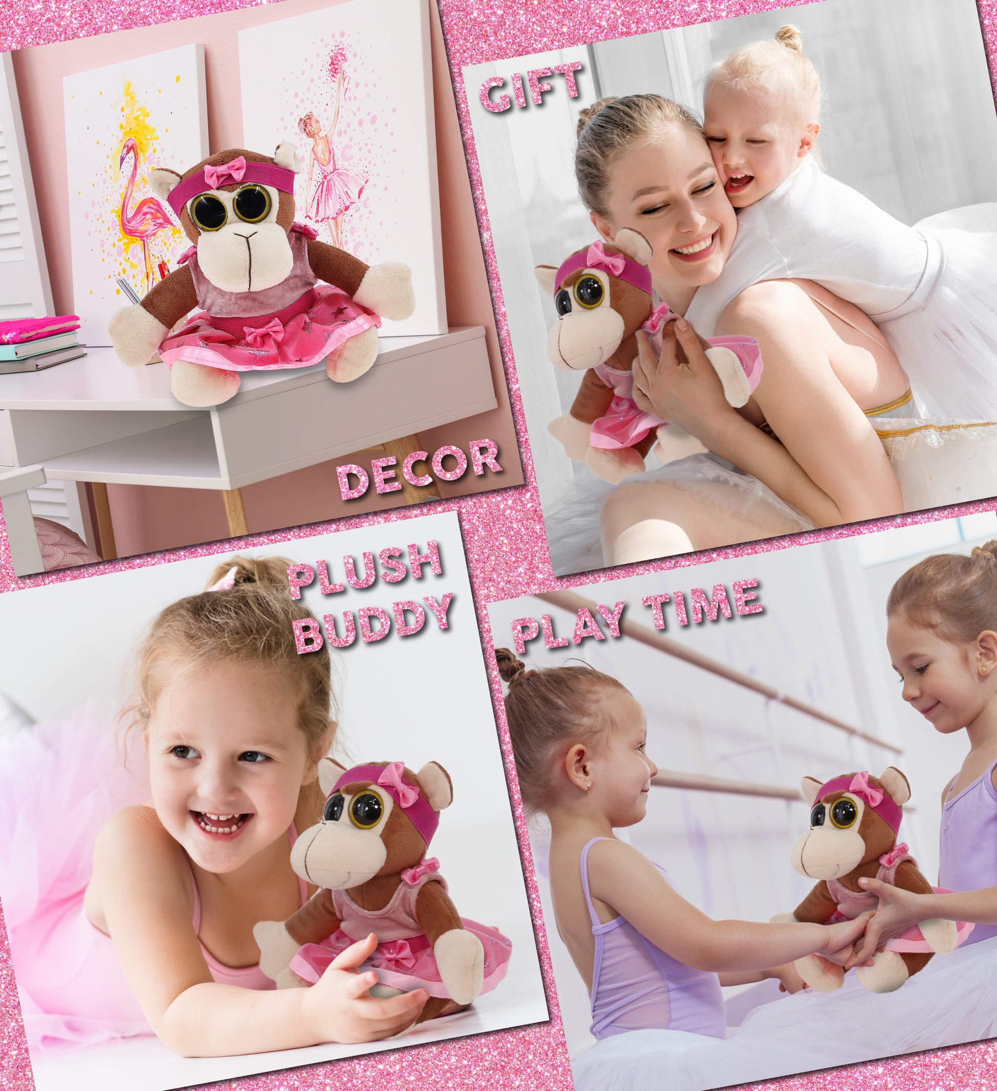 Perfect Ballerina Monkey Plush for Those Who Love Ballet and Dance - Whether you're into wildlife-themed toys or ballet, this monkey ballerina stuffed doll bridges both worlds. Ideal monkey toys for kids and adults who love monkey stuff and ballerina stuffed animal dolls. Perfect addition to your display of ballet dolls and ballet decor and a great ballerina gift for your loved ones who love collecting cool monkey accessories.