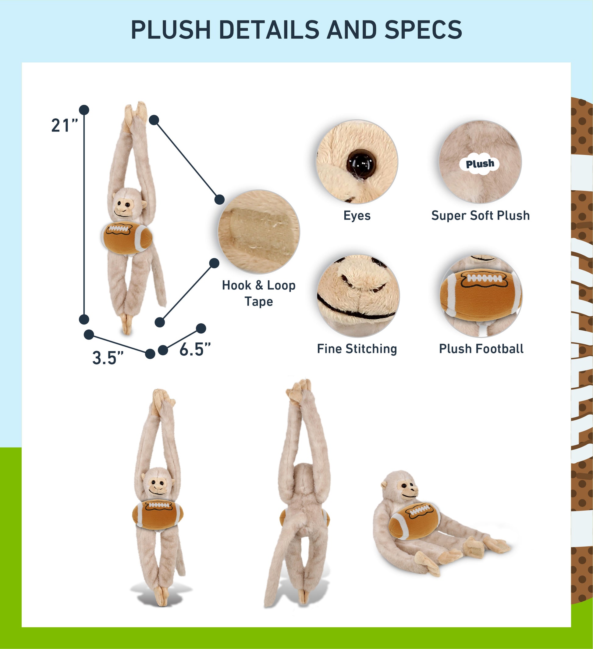 INCLUDED WITH THE PURCHASE OF ADORABLE CUTE MONKEY PLUSH - Includes 1 DolliBu Long Arm Hanging White Squirrel Monkey Plush with a football plush, decorated with realistic features of cute monkey. The body with a sports gift ball plush makes the plush perfect for cuddles. The monkey plush toy features details like its characteristic long tail. The monkey's eyes make the critter so charming. The cute plush toy buddy measures 21Lx3.5Wx6.5H inches.