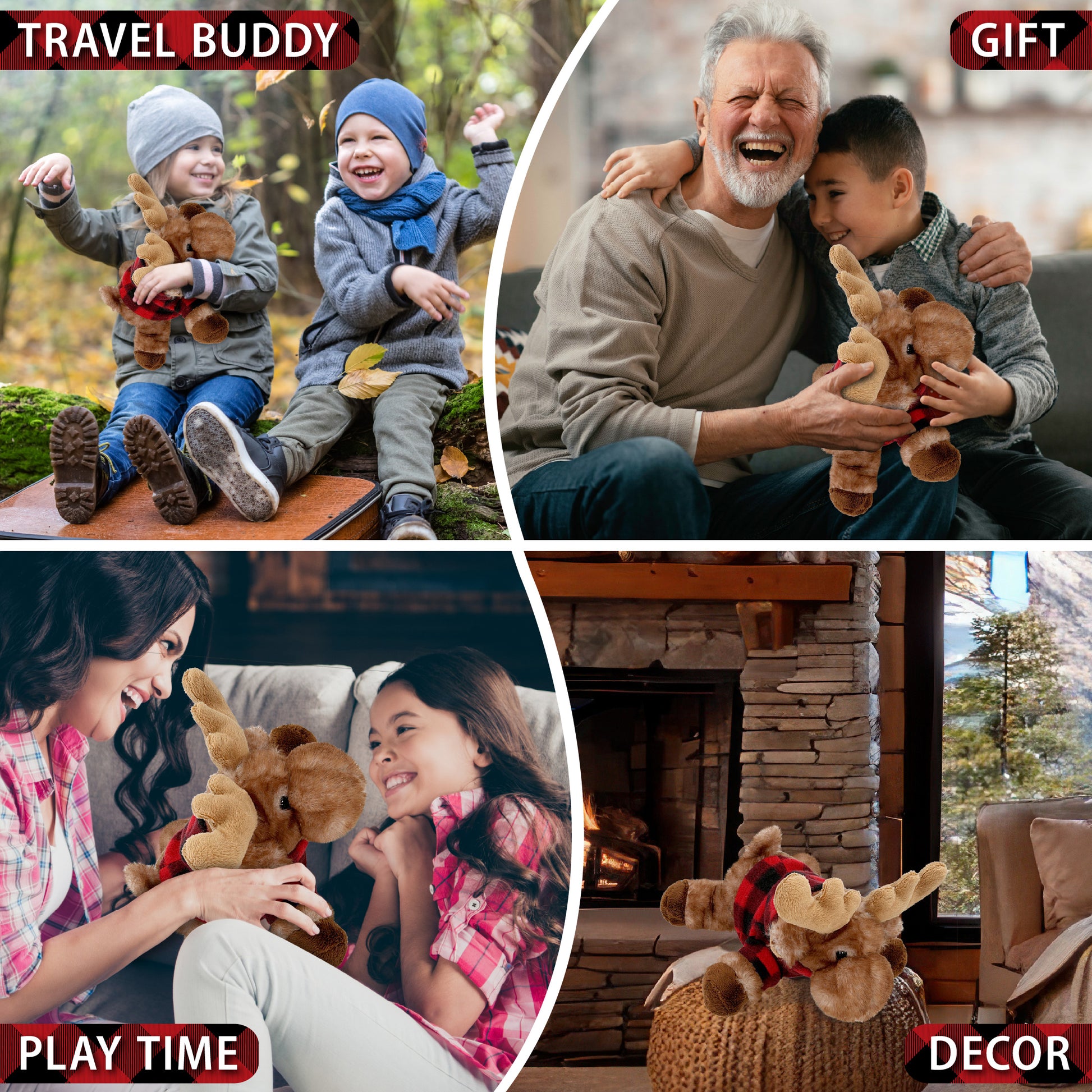High-Quality Lumberjack Stuffed Animal - The moose stuffed toy is made from high-quality 90% polyester to ensure long-lasting comfort and durability, making it a perfect holiday buddy. It's black and red flannel shirt paired with a soft plaid hoodie, gives this plush a winter look perfect for holiday decor or thoughtful stuffed animals Christmas gift for loved ones. A heartwarming addition to your holiday traditions!